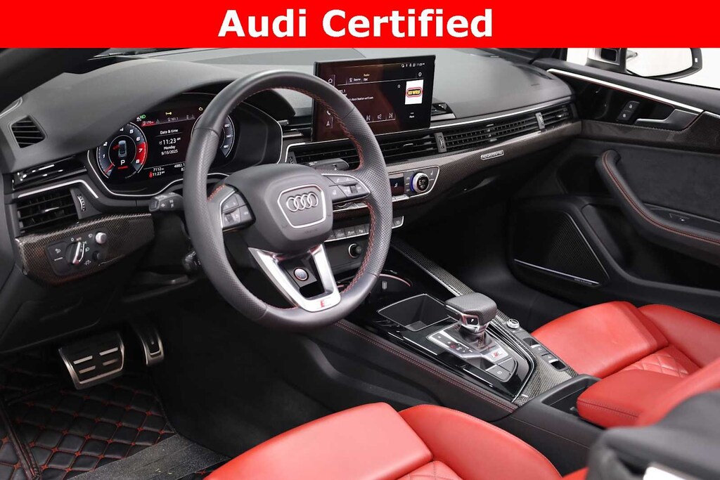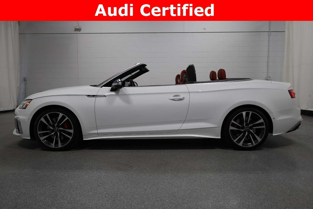 Audi Certified!!!! Arkona White/Black Roof 2024 Audi S5 3.0T Prestige quattro quattro 8-Speed Automatic with Tiptronic 3.0L TFSI 2D Convertible, 3.0L TFSI, 8-Speed Automatic with Tiptronic, quattro, Magma Red w/Fine Nappa Leather Seating Surfaces, Alarm System w/Motion Sensor, Animation for Headlights & Taillights, Audi Advanced Key, Audi Connect NAV & PLUS, Audi Laser Light & Headlight Washers, Audi Side Assist w/Pre Sense Rear, Audi Virtual Cockpit Plus, Auto-Dimming Exterior Mirrors w/Memory, Bang & Olufsen Sound System w/3D Sound, Convenience Package, Driver Seat Memory, Fine Nappa Leather Seating Surfaces, Front Bucket Seats, Front Center Armrest, Head-Up Display, Heated Front S Sport Seats, Heated front seats, Heated steering wheel, Leatherette Covered Center Console & Door Armrests, LED Interior Lighting Plus Package, MMI Navigation Plus, Navigation Package, Park Assist, Power Folding Exterior Mirrors, Prestige Package, Red Brake Calipers, S Sport Package, SiriusXM w/360L, Sport Adaptive Damping Suspension, Sport Rear Differential, Top View Camera System, Traffic Sign Recognition, Wheels: 19 5-Double-Arm Design Bi-Color Finish, Wireless Phone Charging Pad.