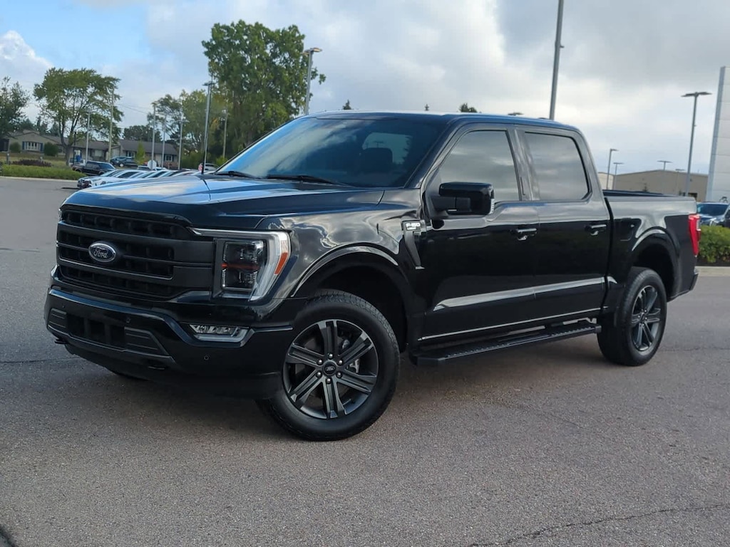 2023 Ford F-150 Lariat Agate Black Metallic 4WD **Ford Certified**, F-150 Lariat, 4D SuperCrew, 2.7L V6 EcoBoost, 10-Speed Automatic, 4WD, Agate Black Metallic, Black w/Leather-Trimmed Bucket Seats, 2nd Row Heated Seats, Accent-Color Angular Step Bars, Body-Color Front & Rear Bumpers, Box Side Decals, Chrome Single-Tip Exhaust, Connected Built-In Navigation, Dark 2-Bar & 1 Minor Bar Style Grille, Equipment Group 502A High, Evasive Steering Assist, Ford Co-Pilot360 Assist 2.0, GVWR: 6,600 lbs Payload Package, Intelligent Adaptive Cruise Control w/Stop & Go, Intersection Assist, Lariat Sport Appearance Package, LED Projector w/Dynamic Bending Headlamps, Power Tilt/Telescoping Steering Column w/Memory, Radio: B&O Unleashed Sound System by Bang & Olufsen, Rain-Sensing Wipers, Speed Sign Recognition, Twin Panel Moonroof, Wheels: 20 Chrome-Like PVD, Wireless Charging Pad.