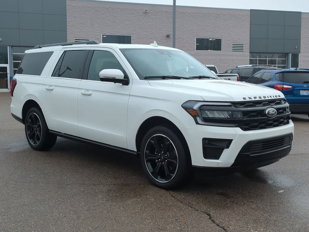 2024 Ford Expedition Max Limited Star White Metallic Tri-Coat 4WD Expedition Max Limited, EcoBoost 3.5L V6 GTDi DOHC 24V Twin Turbocharged, 10-Speed Automatic, 4WD, Star White Metallic Tri-Coat, 1st & 2nd Row Floor Mats w/Logo, Black Headlamp and Fog Lamp Bezels, Black Limited Tailgate Badge, Black Rear Bumper, Black Roof Rack Side Rails, Body Color Door Handles, Ebony Black Bar and Mesh Grille, Ebony Black Power Deployable Running Boards, Ebony Black Tailgate Applique, Equipment Group 303A Stealth Package, Expedition Lettering on Hood, Heated/Ventilated Lthr Front Captains Chairs (A), LED Taillamp w/Black Bezels, Navigation system: Connected Navigation, Power-Folding Sideview Mirrors w/Autofold, Sport Center Console, Sport Tuned Suspension, Stealth Edition Package, Wheels: 22 Premium Black-Painted Aluminum.