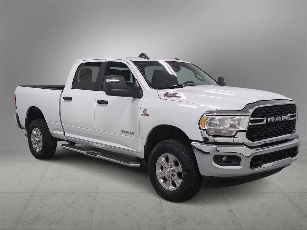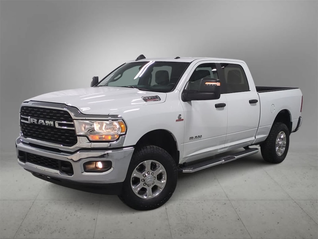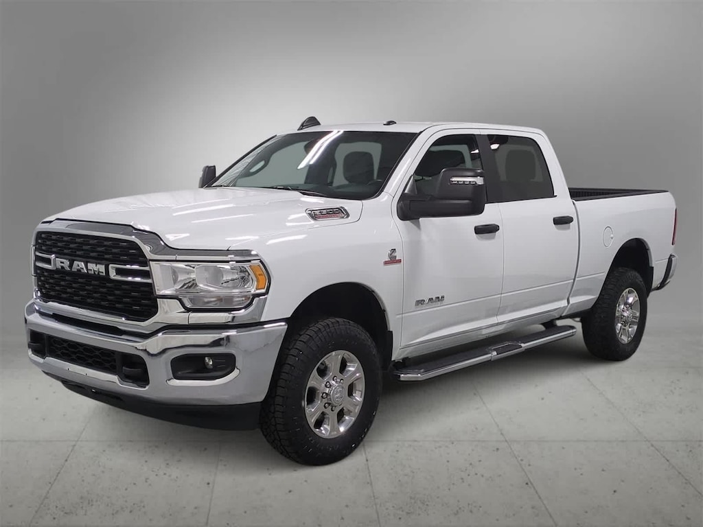 Our Diesel powered, Accident Free, One Owner, Certified Pre-Owned 2024 RAM 2500 Big Horn Crew Cab 4X4 with the Level 1 Equipment Pack in Bright White is engineered to make quick work out of your challenging tasks! Motivated by a TurboCharged 6.7 Liter Cummins Diesel 6 Cylinder providing 370hp and 850lb-ft of torque to a 6 Speed Automatic transmission for terrific towing and hauling capability. A heavy-duty suspension is standard for a confident ride, and our Four Wheel Drive truck has no-nonsense good looks with eye-catching details. This mighty machine is ready to rule the road with our Level 1 Pack, which adds fog lamps, multifunction mirrors, and alloy wheels to chrome accents, bright bumpers, a Class V receiver hitch, and a mighty RAM grille. Running boards and a spray-on bedliner have also been installed.