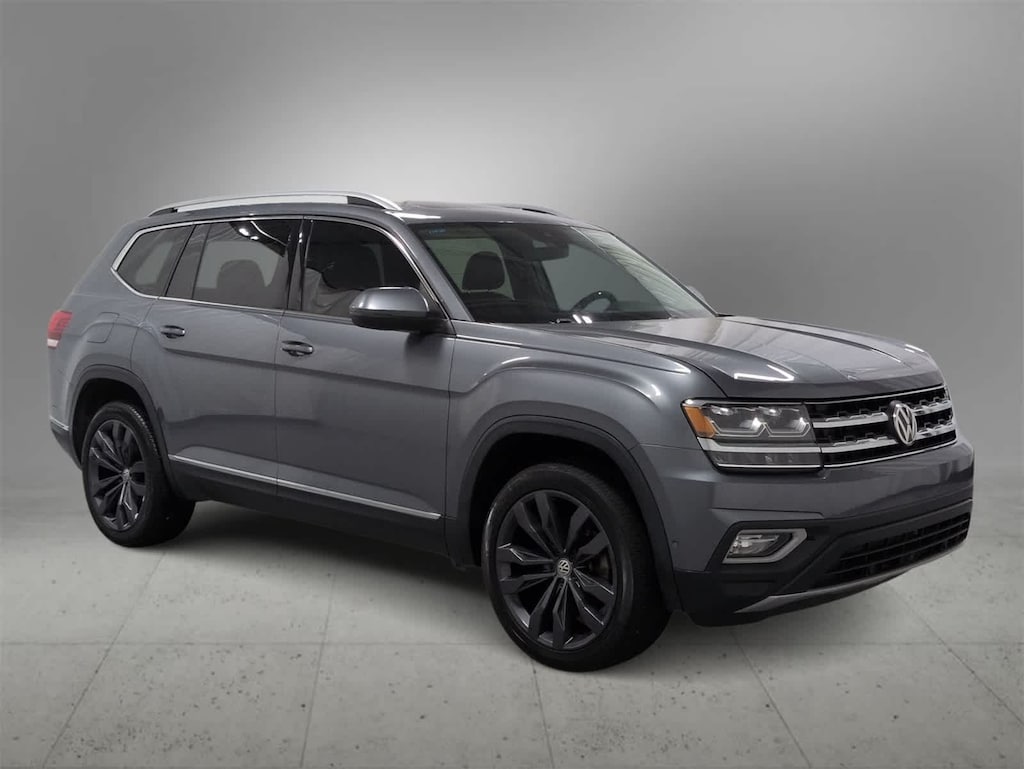 Our 2019 Volkswagen Atlas SEL Premium with 4MOTION is proudly displayed in Platinum Gray Metallic. Powered by a 3.6 Liter V6 that generates 276hp connected to an 8 Speed Automatic transmission for easy passing. This All Wheel Drive SUV combination promises solid performance with a composed, confident ride and offers nearly 25mpg on the highway. Our SEL Premium serves up sophisticated, bold style with its silver roof rails, hands-free, easy-open liftgate, LED lights, and beautiful 20-inch alloy wheels.