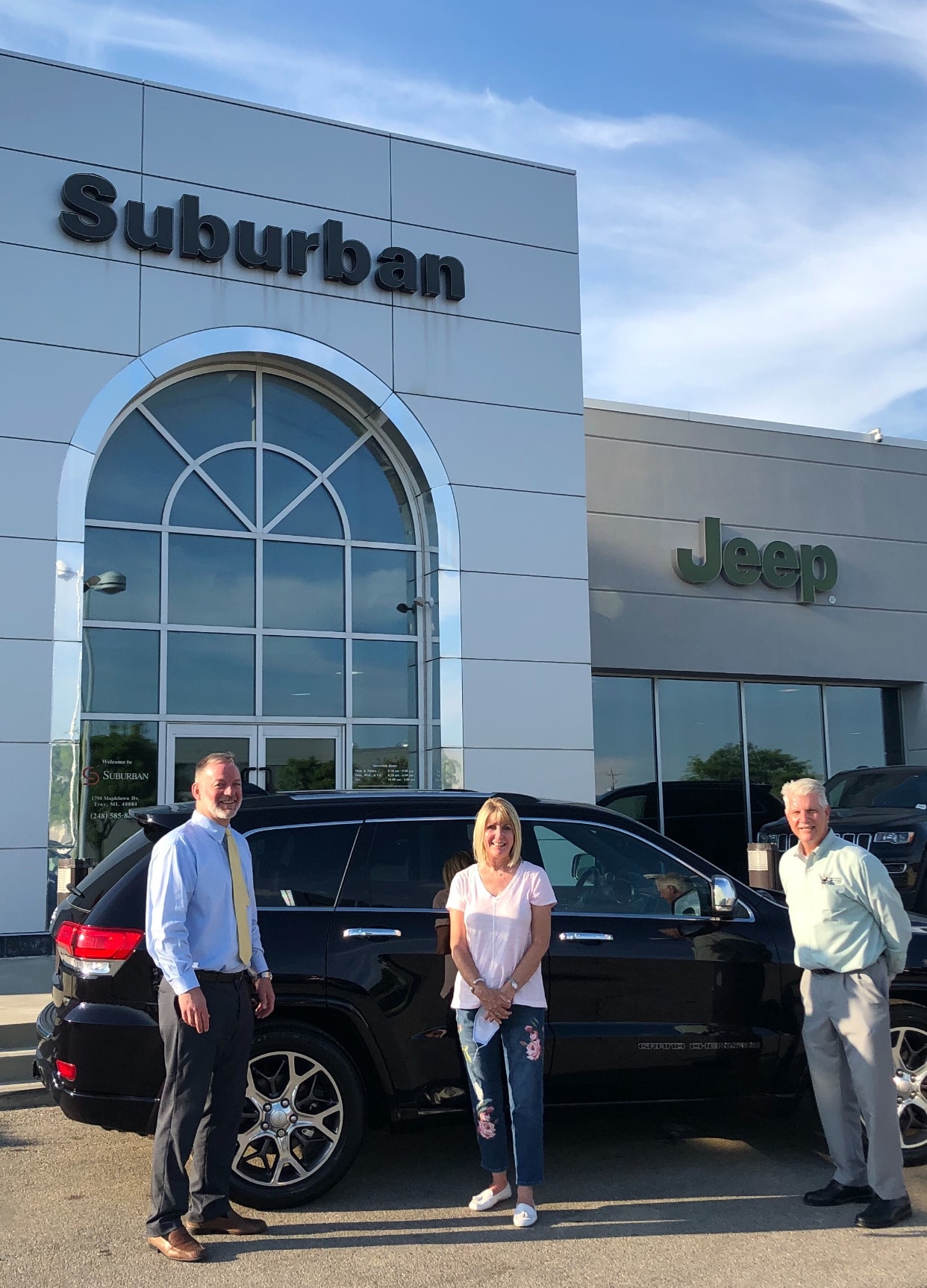 Debbie is excited to receive her brand new Jeep Grand Cherokee from Suburban Chrysler of Troy.