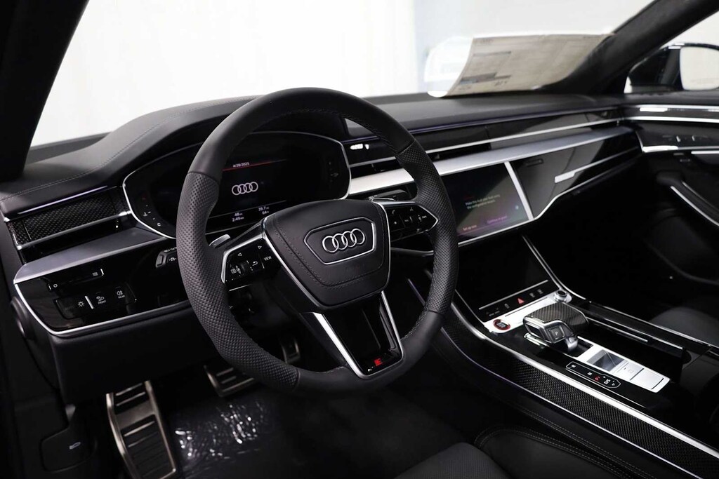 Daytona Gray Pearl Effect 2025 Audi S8 4.0T quattro quattro 8-Speed Automatic with Tiptronic 4.0L V8 Turbocharged DOHC 32V LEV3-ULEV125 563hp S8 4.0T quattro, 4.0L V8 Turbocharged DOHC 32V LEV3-ULEV125 563hp, 8-Speed Automatic with Tiptronic, Black w/Valcona Leather Seat Upholstery, Adaptive Cruise Assist w/Lane Guidance, Audi Side Assist w/Pre Sense Rear, Black Audi Rings & Model Badge, Black Dinamica Headliner, Black Exterior Mirror Housings, Black Optic Plus Package, Digital Matrix-Design LED Headlights, Executive Package, Head-Up Display, Heated Rear Outboard Seats, Heated Rear Seat Armrests, Intersection Assist, Luxury Package, Navigation system: MMI Navigation plus, Pwr Rr Outboard Seats w/Lumbar & Memory Functions, Rear Matrix LED Reading Lights, Rear Outboard Seat Ventilation & Massage, Rear Seat Remote Control, Remote Park Assist Plus, Wheels: 21 7-Arm-Dynamic Design.