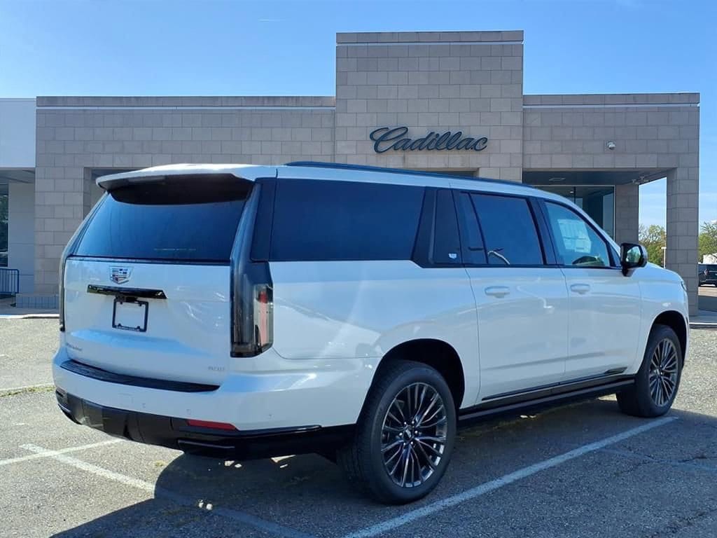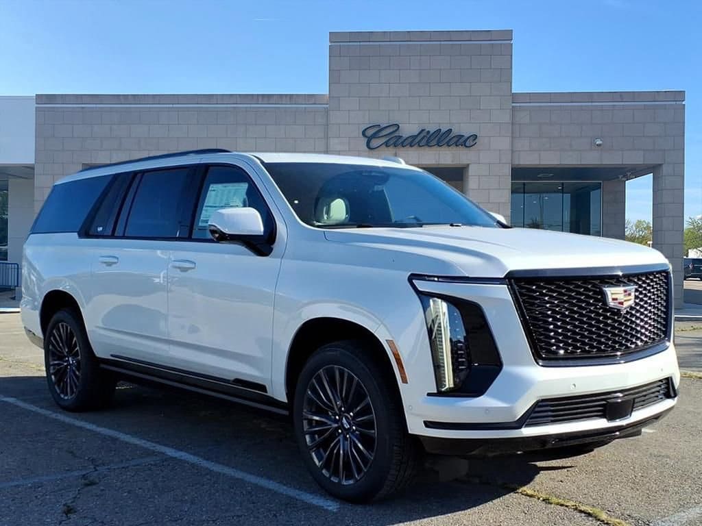 Driving our 2025 Cadillac Escalade ESV Sport Platinum 4WD with the Touring Package can feel like a dream come true in Crystal White Tricoat! Powered by a 6.2 Liter V8 supplying 420hp to a 10 Speed Automatic transmission so you can go fast and tow strong. This Four Wheel Drive SUV also returns nearly 18mpg on the highway and rides through your world with an adaptive air ride suspension and Magnetic Ride Control for composed capability. Crafted to impress, our extended-length Escalade boasts LED lighting, a panoramic sunroof, power open/close and soft-close doors, power running boards, a hands-free liftgate, and 22-inch wheels.