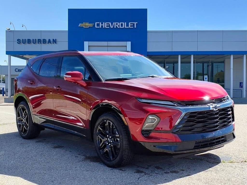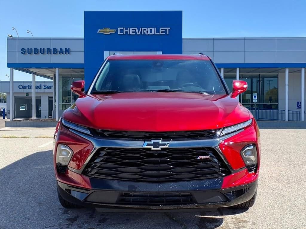 Aim higher in our 2025 Chevrolet Blazer RS AWD with the Driver Confidence II Pack, which hits the target for terrific style and fun driving in Radiant Red Tintcoat! Powered by a 3.6 Liter V6 supplying 308hp to a 9 Speed Automatic transmission. This All Wheel Drive SUV also features a twin-clutch AWD system for elevated capability, and it returns nearly 26mpg on the highway. A signature RS grille sets the tone for our Blazer's style, backed by LED lighting, a hands-free liftgate, 20-inch alloy wheels, dual rectangular exhaust outlets, heated power mirrors, black bodyside moldings, and black Bowties.