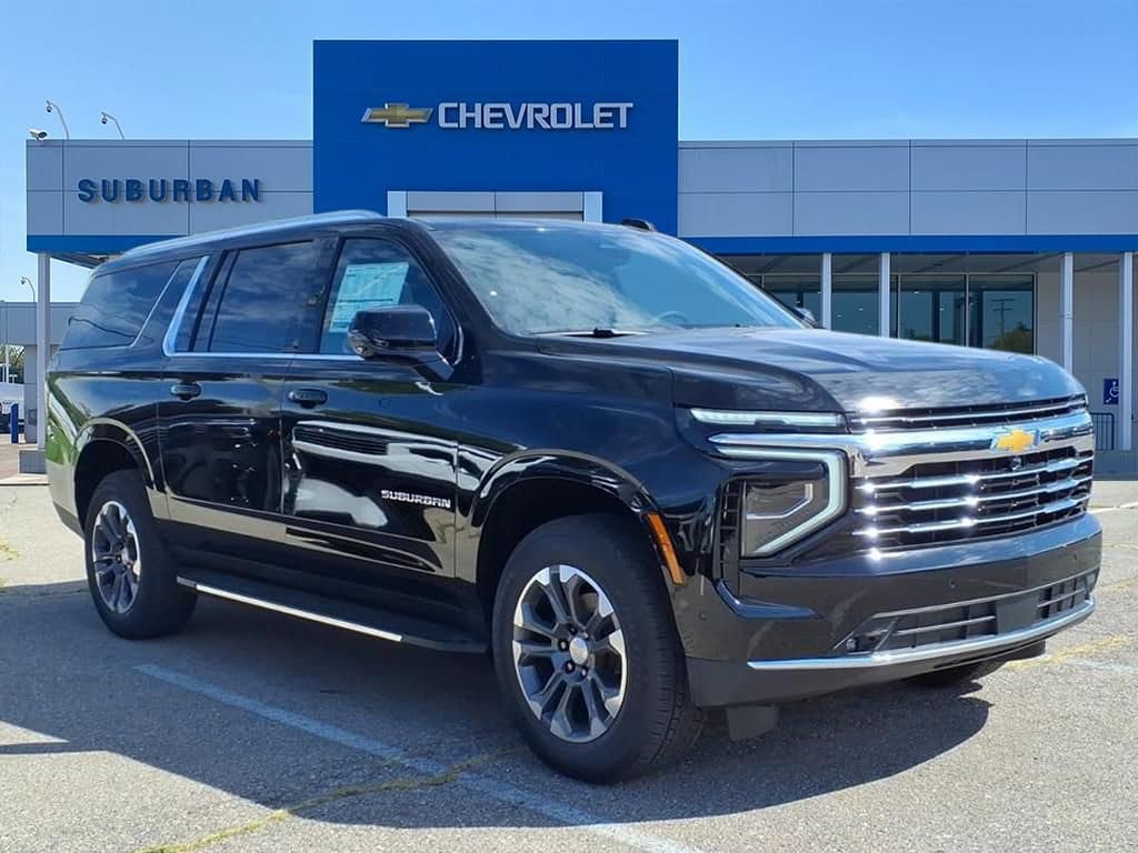 Designed to deliver full-size versatility, our 2025 Chevrolet Suburban LT 4WD with the Comfort Package, in bold Black combines upscale style, advanced capability, and family-focused functionality for commanding presence on any road. Powered by a 5.3 Liter V8 supplying 355hp to a 10 Speed Automatic transmission backed by tow/haul mode. A limited-slip rear differential and AutoTrac transfer case help unlock rugged capability, and this Four Wheel Drive SUV sees nearly 19mpg on the highway. Our Suburban makes a major impact in the style department with LED lighting, black assist steps, bright roof rails, a panoramic sunroof, an aggressive grille, heated power mirrors, alloy wheels, and a hands-free liftgate.