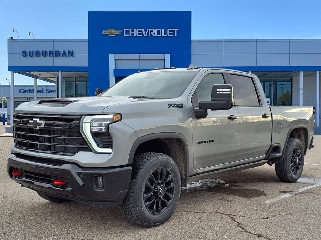 Our 2026 Chevrolet Silverado 2500HD LTZ Crew Cab 4X4 is carefully equipped so you can concentrate on doing more in Sterling Gray Metallic! Powered by a 6.6 Liter V8 providing 401hp to a 10 Speed Allison Automatic transmission for rewarding strength on the job or off. Confidence comes standard with the automatic locking rear differential and HD suspension, and this Four Wheel Drive truck makes a fierce impression with its commanding design. Check out our Silverado's LED lighting, fog lamps, an EZ Lift power lock/release tailgate, stainless steel body moldings, chrome accents, power-folding trailer mirrors, bed steps, and alloy wheels.