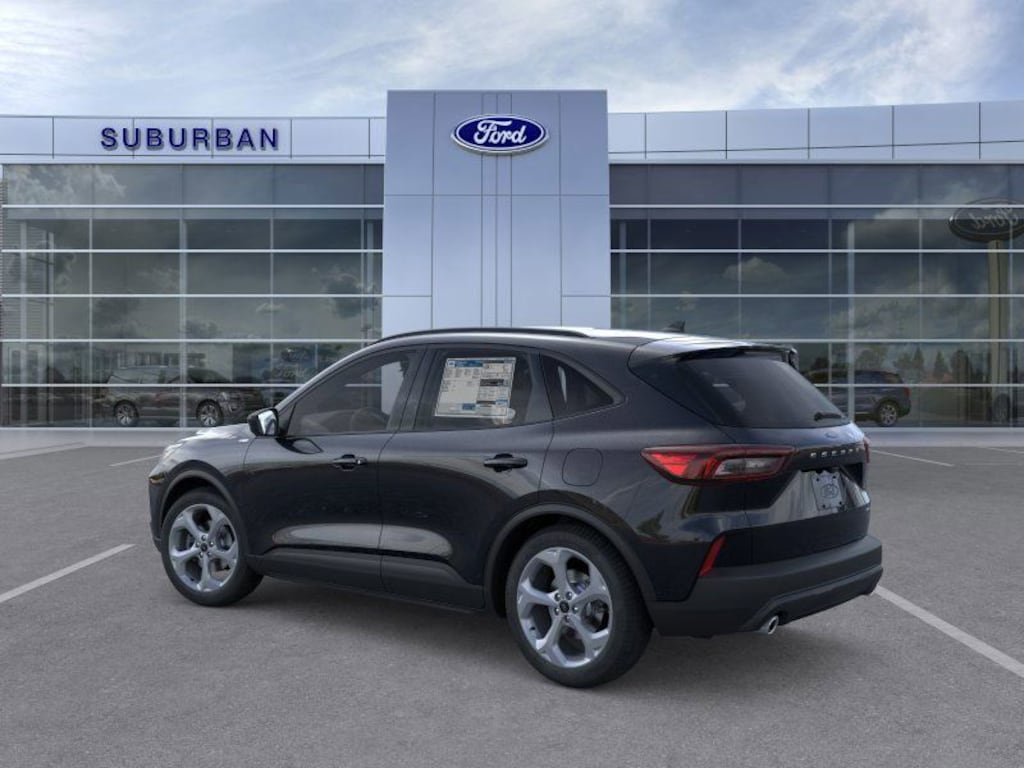 2025 Ford Escape ST-Line Is nicely equipped with Cold Weather Package (Heated Front Row Seats, Heated Sideview Mirrors, Heated Steering Wheel, and Remote Starter System), Equipment Group 300A, AWD, 3.81 Axle Ratio, 4-Wheel Disc Brakes, 6 Speakers, ABS brakes, Air Conditioning, Alloy wheels, AM/FM radio: SiriusXM, AM/FM Stereo, Auto High-beam Headlights, Automatic temperature control, Brake assist, Bumpers: body-color, Compass, Delay-off headlights, Driver door bin, Driver vanity mirror, Dual front impact airbags, Dual front side impact airbags, Electronic Stability Control, Emergency communication system: SYNC 4 911 Assist, First Aid Kit, FordPass Connect, Four wheel independent suspension, Front anti-roll bar, Front Bucket Seats, Front Center Armrest, Front dual zone A/C, Front reading lights, Fully automatic headlights, Illuminated entry, Knee airbag, Low tire pressure warning, Occupant sensing airbag, Outside temperature display, Overhead airbag, Overhead console, Panic alarm, Passenger door bin, Passenger vanity mirror, Power door mirrors, Power driver seat, Power Liftgate, Power steering, Power windows, Radio data system, Rear anti-roll bar, Rear reading lights, Rear seat center armrest, Rear window defroster, Rear window wiper, Remote keyless entry, Road Side Assistance Kit, Speed control, Speed-sensing steering, Speed-Sensitive Wipers, Split folding rear seat, Spoiler, Sport steering wheel, Steering wheel mounted audio controls, SYNC 4, Tachometer, Telescoping steering wheel, Tilt steering wheel, Traction control, Trip computer, Variably intermittent wipers, Vinyl/Cloth Front Sport Contour Bucket Seats, and Wheels: 18" Rock Metallic Painted Aluminum. Factory MSRP: $34,885 Dealer Discount of $2,348 off MSRP
