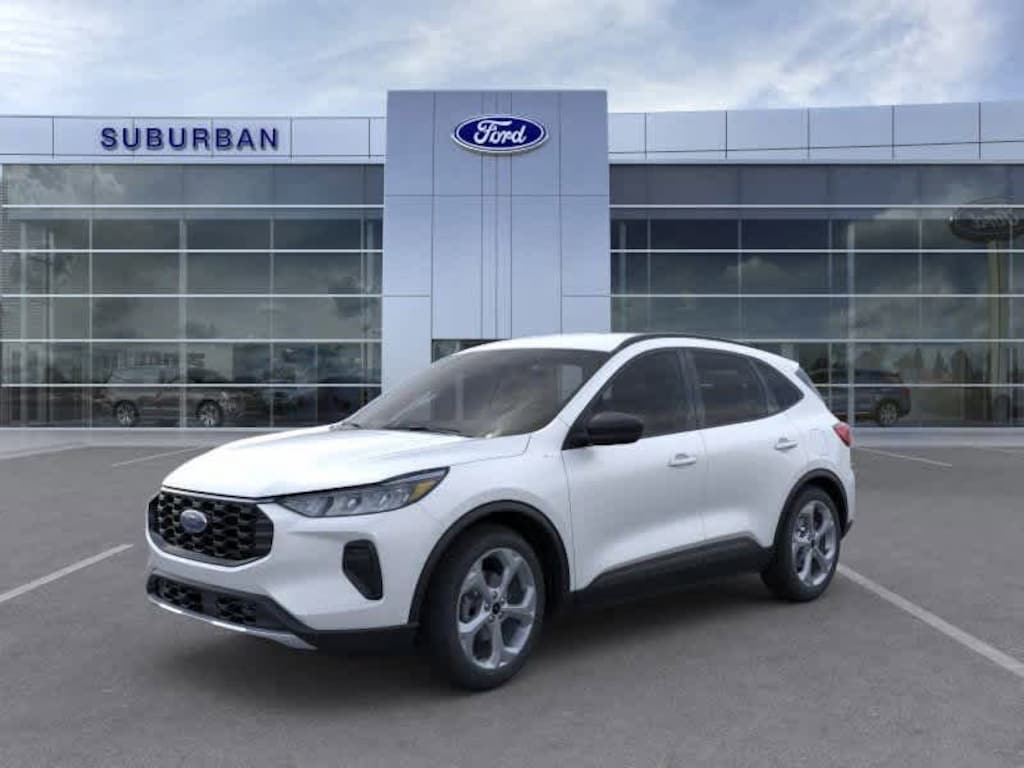 Escape ST-Line is nicely equipped with Cold Weather Package (Heated Front Row Seats, Heated Sideview Mirrors, Heated Steering Wheel, and Remote Starter System), Equipment Group 300A, Tech Pack #1 (Adaptive Cruise Control w/Stop-and-Go, Connected Navigation, Ford Co-Pilot360 Assist+, Intersection Assist, Predictive Speed Assist, Rear Parking Sensor, Rear-View Camera, and SYNC 4 w/Enhanced Voice Recognition), AWD, 3.81 Axle Ratio, 4-Wheel Disc Brakes, 6 Speakers, ABS brakes, Air Conditioning, Alloy wheels, AM/FM radio: SiriusXM, AM/FM Stereo, Auto High-beam Headlights, Automatic temperature control, Brake assist, Bumpers: body-color, Compass, Delay-off headlights, Driver door bin, Driver vanity mirror, Dual front impact airbags, Dual front side impact airbags, Electronic Stability Control, Emergency communication system: SYNC 4 911 Assist, First Aid Kit, FordPass Connect, Four wheel independent suspension, Front anti-roll bar, Front Bucket Seats, Front Center Armrest, Front dual zone A/C, Front reading lights, Fully automatic headlights, Illuminated entry, Knee airbag, Low tire pressure warning, Occupant sensing airbag, Outside temperature display, Overhead airbag, Overhead console, Panic alarm, Passenger door bin, Passenger vanity mirror, Power door mirrors, Power driver seat, Power Liftgate, Power steering, Power windows, Radio data system, Rear anti-roll bar, Rear reading lights, Rear seat center armrest, Rear window defroster, Rear window wiper, Remote keyless entry, Road Side Assistance Kit, Speed control, Speed-sensing steering, Speed-Sensitive Wipers, Split folding rear seat, Spoiler, Sport steering wheel, Steering wheel mounted audio controls, SYNC 4, Tachometer, Telescoping steering wheel, Tilt steering wheel, Traction control, Trip computer, Variably intermittent wipers, Vinyl/Cloth Front Sport Contour Bucket Seats, and Wheels: 18 Rock Metallic Painted Aluminum. See dealer for details. Price may include Ford Employee discount. Price does not include licensing costs, registration fees, taxes and dealer doc fee of $280, which are to be paid by the consumer.$750 - 2024 College Student Recognition Exclusive Cash Reward Pgm. Exp. 01/05/2026