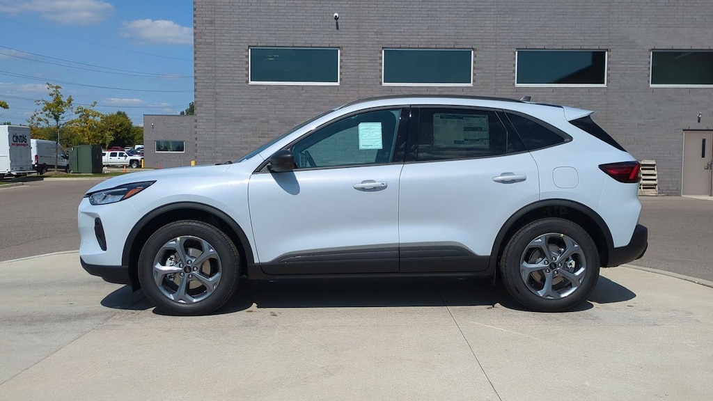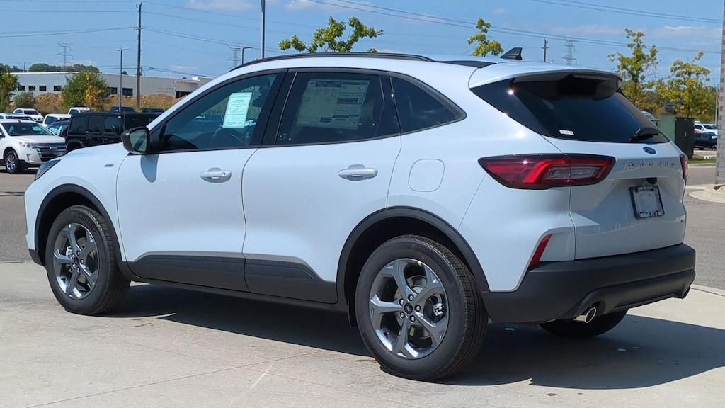 2025 Ford Escape ST-Line Is nicely equipped with Cold Weather Package (Heated Front Row Seats, Heated Sideview Mirrors, Heated Steering Wheel, and Remote Starter System), Equipment Group 300A, AWD, 3.81 Axle Ratio, 4-Wheel Disc Brakes, 6 Speakers, ABS brakes, Air Conditioning, Alloy wheels, AM/FM radio: SiriusXM, AM/FM Stereo, Auto High-beam Headlights, Automatic temperature control, Brake assist, Bumpers: body-color, Compass, Delay-off headlights, Driver door bin, Driver vanity mirror, Dual front impact airbags, Dual front side impact airbags, Electronic Stability Control, Emergency communication system: SYNC 4 911 Assist, First Aid Kit, FordPass Connect, Four wheel independent suspension, Front anti-roll bar, Front Bucket Seats, Front Center Armrest, Front dual zone A/C, Front reading lights, Fully automatic headlights, Illuminated entry, Knee airbag, Low tire pressure warning, Occupant sensing airbag, Outside temperature display, Overhead airbag, Overhead console, Panic alarm, Passenger door bin, Passenger vanity mirror, Power door mirrors, Power driver seat, Power Liftgate, Power steering, Power windows, Radio data system, Rear anti-roll bar, Rear reading lights, Rear seat center armrest, Rear window defroster, Rear window wiper, Remote keyless entry, Road Side Assistance Kit, Speed control, Speed-sensing steering, Speed-Sensitive Wipers, Split folding rear seat, Spoiler, Sport steering wheel, Steering wheel mounted audio controls, SYNC 4, Tachometer, Telescoping steering wheel, Tilt steering wheel, Traction control, Trip computer, Variably intermittent wipers, Vinyl/Cloth Front Sport Contour Bucket Seats, and Wheels: 18" Rock Metallic Painted Aluminum. Factory MSRP: $34,885 Dealer Discount of $2,348 off MSRP