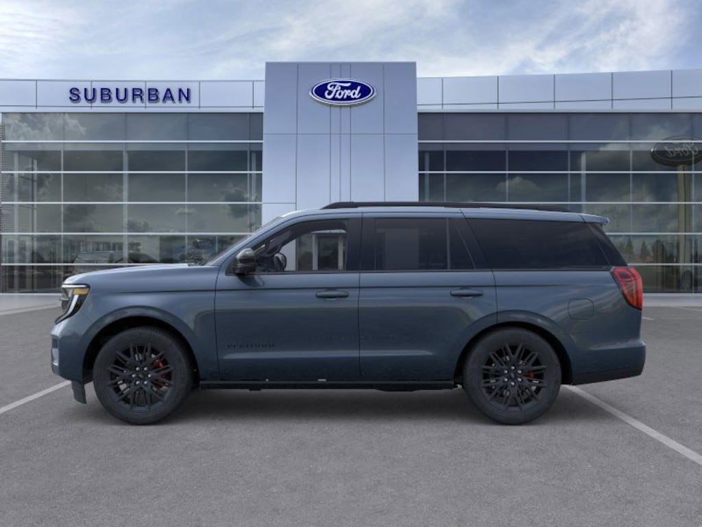 2025 Ford Expedition Platinum Is nicely equipped with Driver's Package (Continuous Control Damping Suspension, Radio: B&O Unleashed Sound System by Bang & Olufsen, and SiriusXM w/360L), Equipment Group 600A Standard Package (2nd Row Power-Folding Captain's Chairs), Stealth Appearance Package (Black Belt Molding, Black Expedition Lettering On Hood, Black Headlamp Bezel w/Ebony Trim Applique, Black Platinum Badge On Tailgate, Black Roof Rails, Carbon Black Front Bumper/Fascia, Engine Sound Enhancer, Rear Side Windows Laminated Glass, and Signature Grille Lighting), Stealth Performance Package (High Flow Exhaust System, Red Brake Calipers, and Wheels: 22" Magnetite Painted Aluminum), 4WD, 10 Speakers, 3.73 Axle Ratio, 3rd row seats: split-bench, 4-Wheel Disc Brakes, ABS brakes, Adjustable pedals, Air Conditioning, Alloy wheels, AM/FM radio: SiriusXM with 360L, Apple CarPlay/Android Auto, Auto High-beam Headlights, Auto-dimming door mirrors, Auto-dimming Rear-View mirror, Automatic temperature control, Brake assist, Bumpers: body-color, Compass, Delay-off headlights, Driver door bin, Driver vanity mirror, Dual front impact airbags, Dual front side impact airbags, Electronic Stability Control, Emergency communication system: 911 Assist, Exterior Parking Camera Rear, Floor Liners, Front & Second Rows, Four wheel independent suspension, Front anti-roll bar, Front Bucket Seats, Front Center Armrest, Front dual zone A/C, Front reading lights, Fully automatic headlights, Garage door transmitter, Genuine wood dashboard insert, Genuine wood door panel insert, Heated & Ventilated Leather Front Captain's Chairs, Heated door mirrors, Heated front seats, Heated rear seats, Heated steering wheel, Illuminated entry, Leather steering wheel, Low tire pressure warning, Memory seat, Navigation System, Occupant sensing airbag, Outside temperature display, Overhead airbag, Overhead console, Panic alarm, Passenger door bin, Passenger vanity mirror, Pedal memory, Power door mirrors, Power driver seat, Power moonroof: Vista Roof, Power passenger seat, Power steering, Power windows, Radio data system, Radio: B&O Sound System by Bang & Olufsen, Rain sensing wipers, Rear air conditioning, Rear anti-roll bar, Rear reading lights, Rear window defroster, Rear window wiper, Reclining 3rd row seat, Remote keyless entry, Security system, Speed control, Speed-sensing steering, Speed-Sensitive Wipers, Split folding rear seat, Spoiler, Steering wheel memory, Steering wheel mounted audio controls, Tachometer, Telescoping steering wheel, Tilt steering wheel, Traction control, Trip computer, Turn signal indicator mirrors, Variably intermittent wipers, Ventilated front seats, Voltmeter, and Wheels: 20" Ebony Bright Machined Aluminum. Factory MSRP: $84,645 Dealer Discount of $6,448 off MSRP