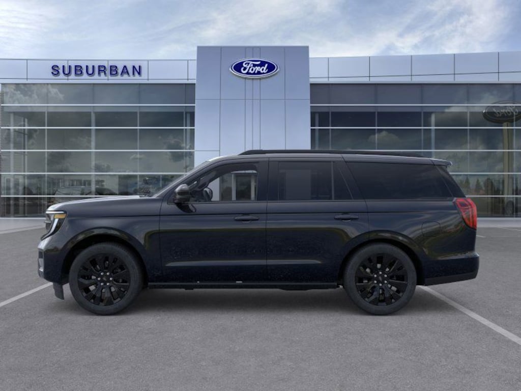 2025 Ford Expedition Platinum Is nicely equipped with Equipment Group 600A Standard Package (2nd Row Power-Folding Captain's Chairs), Stealth Appearance Package (Black Belt Molding, Black Expedition Lettering On Hood, Black Headlamp Bezel w/Ebony Trim Applique, Black Platinum Badge On Tailgate, Black Roof Rails, Carbon Black Front Bumper/Fascia, Engine Sound Enhancer, Rear Side Windows Laminated Glass, and Signature Grille Lighting), 4WD, 10 Speakers, 3.73 Axle Ratio, 3rd row seats: split-bench, 4-Wheel Disc Brakes, ABS brakes, Adjustable pedals, Air Conditioning, Alloy wheels, AM/FM radio: SiriusXM with 360L, Apple CarPlay/Android Auto, Auto High-beam Headlights, Auto-dimming door mirrors, Auto-dimming Rear-View mirror, Automatic temperature control, Brake assist, Bumpers: body-color, Compass, Delay-off headlights, Driver door bin, Driver vanity mirror, Dual front impact airbags, Dual front side impact airbags, Electronic Stability Control, Emergency communication system: 911 Assist, Exterior Parking Camera Rear, Floor Liners, Front & Second Rows, Four wheel independent suspension, Front anti-roll bar, Front Bucket Seats, Front Center Armrest, Front dual zone A/C, Front reading lights, Fully automatic headlights, Garage door transmitter, Genuine wood dashboard insert, Genuine wood door panel insert, Heated & Ventilated Leather Front Captain's Chairs, Heated door mirrors, Heated front seats, Heated rear seats, Heated steering wheel, Illuminated entry, Leather steering wheel, Low tire pressure warning, Memory seat, Navigation System, Occupant sensing airbag, Outside temperature display, Overhead airbag, Overhead console, Panic alarm, Passenger door bin, Passenger vanity mirror, Pedal memory, Power door mirrors, Power driver seat, Power moonroof: Vista Roof, Power passenger seat, Power steering, Power windows, Radio data system, Radio: B&O Sound System by Bang & Olufsen, Rain sensing wipers, Rear air conditioning, Rear anti-roll bar, Rear reading lights, Rear window defroster, Rear window wiper, Reclining 3rd row seat, Remote keyless entry, Safety Kit, Security system, SiriusXM w/360L, Speed control, Speed-sensing steering, Speed-Sensitive Wipers, Split folding rear seat, Spoiler, Steering wheel memory, Steering wheel mounted audio controls, Tachometer, Telescoping steering wheel, Tilt steering wheel, Traction control, Trip computer, Turn signal indicator mirrors, Variably intermittent wipers, Ventilated front seats, Voltmeter, Wheels: 20" Ebony Bright Machined Aluminum, and Wheels: 22" Ebony Painted Aluminum. Factory MSRP: $81,345 Dealer Discount of $6,118 off MSRP