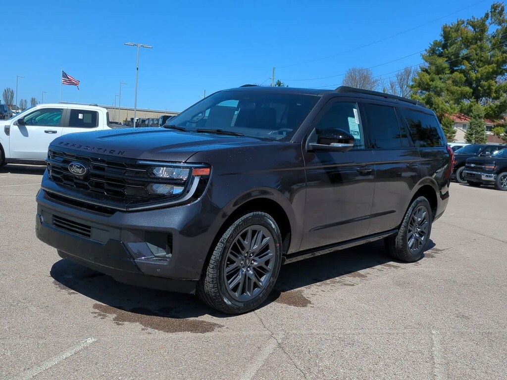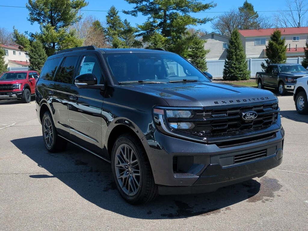 Expedition Platinum is nicely equipped with Connectivity Package (One-Time Purchase), Drivers Package (Continuous Control Damping Suspension, Radio: B&O Unleashed Sound System by Bang & Olufsen, and SiriusXM w/360L), Equipment Group 600A Standard Package (2nd Row Power-Folding Captains Chairs), Stealth Appearance Package (Black Belt Molding, Black Expedition Lettering On Hood, Black Headlamp Bezel w/Ebony Trim Applique, Black Platinum Badge On Tailgate, Black Roof Rails, Carbon Black Front Bumper/Fascia, Engine Sound Enhancer, Rear Side Windows Laminated Glass, and Signature Grille Lighting), Stealth Performance Package (High Flow Exhaust System, Red Brake Calipers, and Wheels: 22 Magnetite Painted Aluminum), 4WD, 10 Speakers, 3.73 Axle Ratio, 3rd row seats: split-bench, 4-Wheel Disc Brakes, ABS brakes, Adjustable pedals, Air Conditioning, Alloy wheels, AM/FM radio: SiriusXM with 360L, Apple CarPlay/Android Auto, Auto High-beam Headlights, Auto-dimming door mirrors, Auto-dimming Rear-View mirror, Automatic temperature control, Brake assist, Bumpers: body-color, Compass, Delay-off headlights, Driver door bin, Driver vanity mirror, Dual front impact airbags, Dual front side impact airbags, Electronic Stability Control, Emergency communication system: 911 Assist, Exterior Parking Camera Rear, Four wheel independent suspension, Front anti-roll bar, Front Bucket Seats, Front Center Armrest, Front dual zone A/C, Front reading lights, Fully automatic headlights, Garage door transmitter, Genuine wood dashboard insert, Genuine wood door panel insert, Heated & Ventilated Leather Front Captains Chairs, Heated door mirrors, Heated front seats, Heated rear seats, Heated steering wheel, Illuminated entry, Leather steering wheel, Low tire pressure warning, Memory seat, Navigation System, Occupant sensing airbag, Outside temperature display, Overhead airbag, Overhead console, Panic alarm, Passenger door bin, Passenger vanity mirror, Pedal memory, Power door mirrors, Power driver seat, Power moonroof: Vista Roof, Power passenger seat, Power steering, Power windows, Radio data system, Radio: B&O Sound System by Bang & Olufsen, Rain sensing wipers, Rear air conditioning, Rear anti-roll bar, Rear reading lights, Rear window defroster, Rear window wiper, Reclining 3rd row seat, Remote keyless entry, Security system, Speed control, Speed-sensing steering, Speed-Sensitive Wipers, Split folding rear seat, Spoiler, Steering wheel memory, Steering wheel mounted audio controls, Tachometer, Telescoping steering wheel, Tilt steering wheel, Traction control, Trip computer, Turn signal indicator mirrors, Variably intermittent wipers, Ventilated front seats, Voltmeter, and Wheels: 20 Ebony Bright Machined Aluminum. See dealer for details. Price may include Ford Employee discount. Price does not include licensing costs, registration fees, taxes and dealer doc fee of $280, which are to be paid by the consumer.$500 - 2025 First Responder Recognition Exclusive Cash Reward. Exp. 01/05/2026