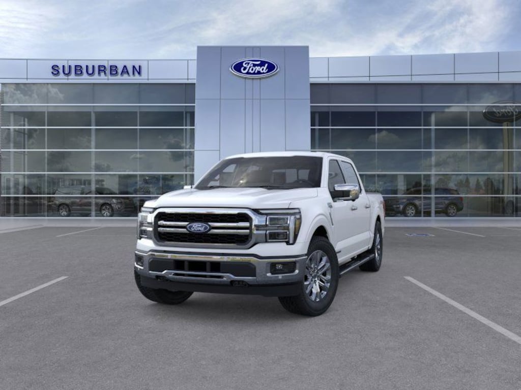 2025 Ford F-150 Lariat Is nicely equipped with Equipment Group 502A High (Wheels: 20" Chrome-Like PVD), Tow/Haul Package, 3.5L PowerBoost Full-Hybrid V6, 4WD, 4-Wheel Disc Brakes, 8 Speakers, ABS brakes, ActiveX Trimmed Bucket Seats, Adjustable pedals, Air Conditioning, Alloy wheels, AM/FM radio: SiriusXM with 360L, Auto High-beam Headlights, Auto-dimming door mirrors, Auto-dimming Rear-View mirror, Automatic temperature control, Brake assist, Bumpers: chrome, Chrome wheels, Compass, Delay-off headlights, Driver door bin, Driver vanity mirror, Dual front impact airbags, Dual front side impact airbags, Electronic Stability Control, Emergency communication system: SYNC 4 911 Assist, Front anti-roll bar, Front Bucket Seats, Front Center Armrest, Front dual zone A/C, Front fog lights, Front reading lights, Front wheel independent suspension, Fully automatic headlights, Garage door transmitter, Heated door mirrors, Heated front seats, Heated steering wheel, Illuminated entry, Low tire pressure warning, Memory seat, Navigation system: Connected Navigation, Occupant sensing airbag, Outside temperature display, Overhead airbag, Overhead console, Panic alarm, Passenger door bin, Passenger vanity mirror, Pedal memory, Power door mirrors, Power driver seat, Power passenger seat, Power steering, Power windows, Radio data system, Radio: B&O Sound System by Bang & Olufsen, Rain sensing wipers, Rear reading lights, Rear seat center armrest, Rear step bumper, Rear window defroster, Remote keyless entry, Security system, Speed control, Split folding rear seat, Steering wheel mounted audio controls, SYNC 4 w/Enhanced Voice Recognition, Tachometer, Telescoping steering wheel, Tilt steering wheel, Traction control, Trip computer, Turn signal indicator mirrors, Twin Panel Moonroof, Variably intermittent wipers, Ventilated front seats, Voltmeter, and Wheels: 18" Chrome-Like PVD. Factory MSRP: $73,845 Dealer Discount of $7,451 off MSRP