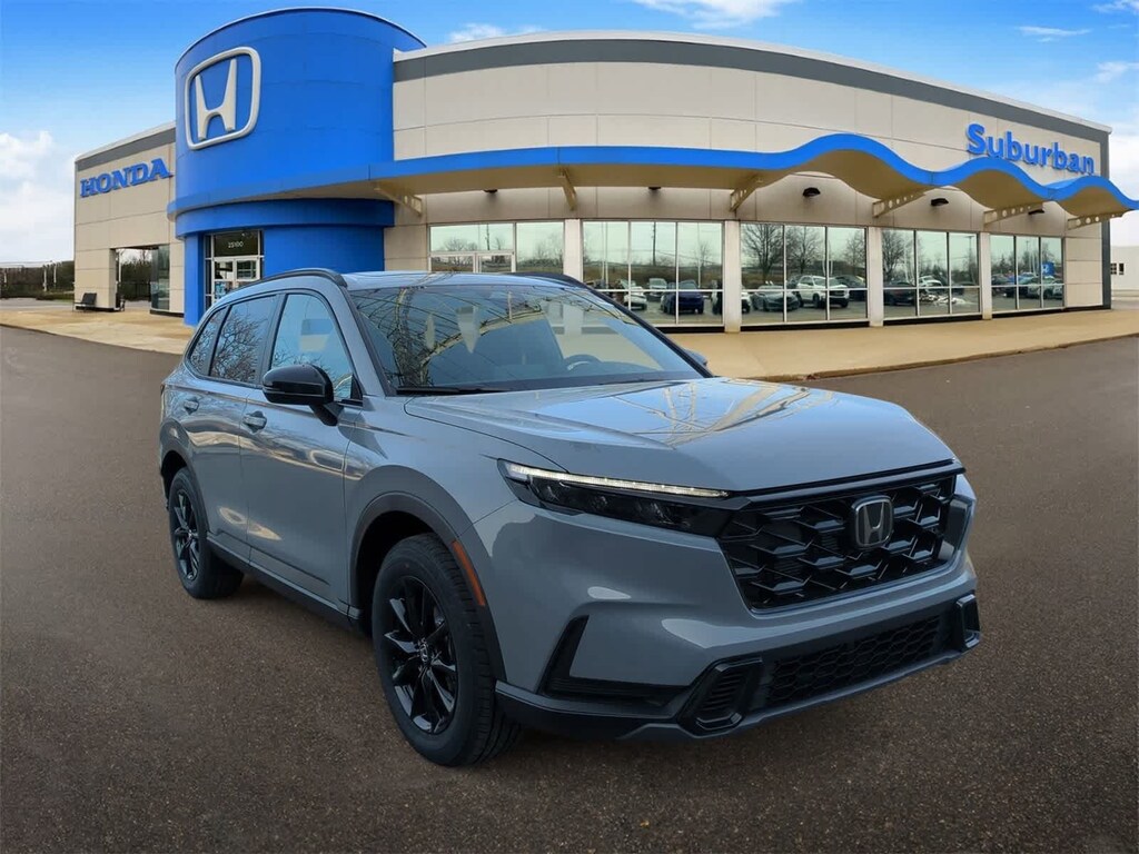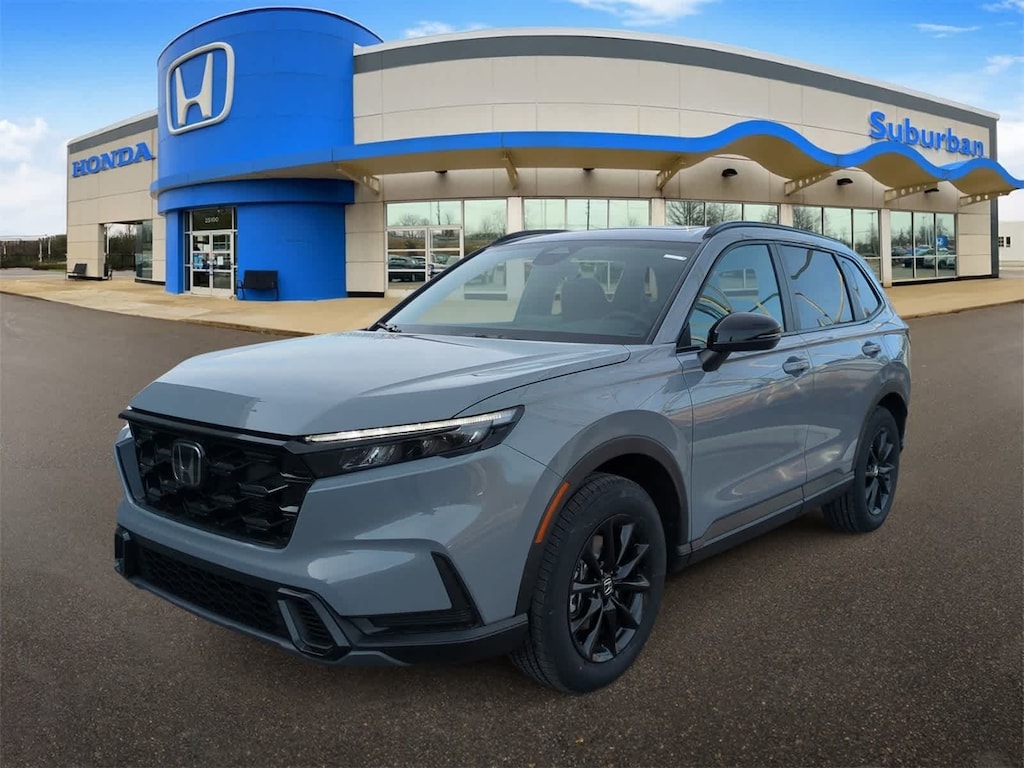 2.0L I4 DOHC 16V, 4-Wheel Disc Brakes, 6 Speakers, ABS brakes, Adaptive Cruise Control: Adaptive Cruise Control (ACC) with Low-Speed Follow, Air Conditioning, Alloy wheels, AM/FM radio, Apple CarPlay/Android Auto, Auto High-beam Headlights, Automatic temperature control, Blind Spot Information (BSI) System warning, Brake assist, Bumpers: body-color, Cloth Seat Trim, Compass, Delay-off headlights, Driver door bin, Driver vanity mirror, Dual front impact airbags, Dual front side impact airbags, Electronic Stability Control, Exterior Parking Camera Rear, Four wheel independent suspension, Front anti-roll bar, Front Bucket Seats, Front Center Armrest, Front dual zone A/C, Front reading lights, Fully automatic headlights, Heated door mirrors, Heated Front Bucket Seats, Heated front seats, Illuminated entry, Knee airbag, Leather Shift Knob, Leather steering wheel, Low tire pressure warning, Occupant sensing airbag, Outside temperature display, Overhead airbag, Overhead console, Panic alarm, Passenger door bin, Passenger vanity mirror, Power door mirrors, Power driver seat, Power moonroof, Power steering, Power windows, Radio data system, Radio: 240-Watt AM/FM Audio System, Rear anti-roll bar, Rear reading lights, Rear seat center armrest, Rear side impact airbag, Rear window defroster, Rear window wiper, Remote keyless entry, Security system, Speed control, Speed-sensing steering, Speed-Sensitive Wipers, Split folding rear seat, Spoiler, Steering wheel mounted audio controls, Telescoping steering wheel, Tilt steering wheel, Traction control, Trip computer, Turn signal indicator mirrors, Variably intermittent wipers, and Wheels: 18 Berlina Black Bluetooth Backup Camera. Urban Gray Pearl 2026 Honda CR-V Hybrid Sport eCVT 2.0L I4 DOHC 16V.