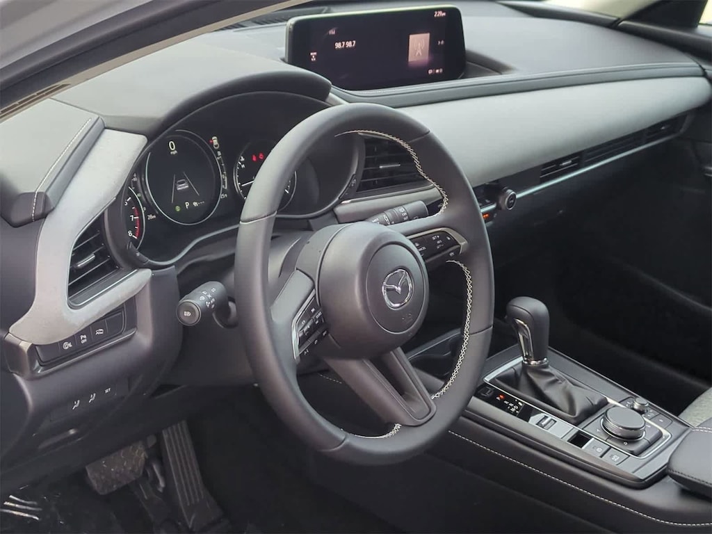 4-Wheel Disc Brakes, 8 Speakers, ABS brakes, Aero Gray Paint Charge, Air Conditioning, Alloy wheels, AM/FM radio, AppLink/Apple CarPlay and Android Auto, Auto High-beam Headlights, Automatic temperature control, Black Lug Nuts & Black Wheel Locks, Brake assist, Bumpers: body-color, Cargo Tray, Compass, Delay-off headlights, Driver door bin, Driver vanity mirror, Dual front impact airbags, Dual front side impact airbags, Electronic Stability Control, Emergency communication system: MAZDA CONNECT, Exterior Parking Camera Rear, Front anti-roll bar, Front Bucket Seats, Front Center Armrest, Front dual zone A/C, Front reading lights, Front wheel independent suspension, Fully automatic headlights, Heated door mirrors, Heated Front Bucket Seats, Heated front seats, High Wall All-Weather Floor Mats, Illuminated entry, Knee airbag, Leather Shift Knob, Leather steering wheel, Leatherette Seat Trim w/Gray Cloth Inserts, Low tire pressure warning, MAZDA CONNECT Infotainment System, Memory seat, Occupant sensing airbag, Outside temperature display, Overhead airbag, Overhead console, Panic alarm, Passenger door bin, Passenger vanity mirror, Power door mirrors, Power driver seat, Power moonroof, Power steering, Power windows, Radio data system, Radio: AM/FM Audio System, Rain sensing wipers, Rear seat center armrest, Rear side impact airbag, Rear window defroster, Rear window wiper, Remote keyless entry, Speed control, Speed-sensing steering, Split folding rear seat, Spoiler, Steering wheel mounted audio controls, Tachometer, Telescoping steering wheel, Tilt steering wheel, Traction control, Trip computer, Turn signal indicator mirrors, Variably intermittent wipers, and Wheels: 18 x 7J Aluminum Alloy. Price includes: $2000 - Customer Cash. Exp. 03/02/2026