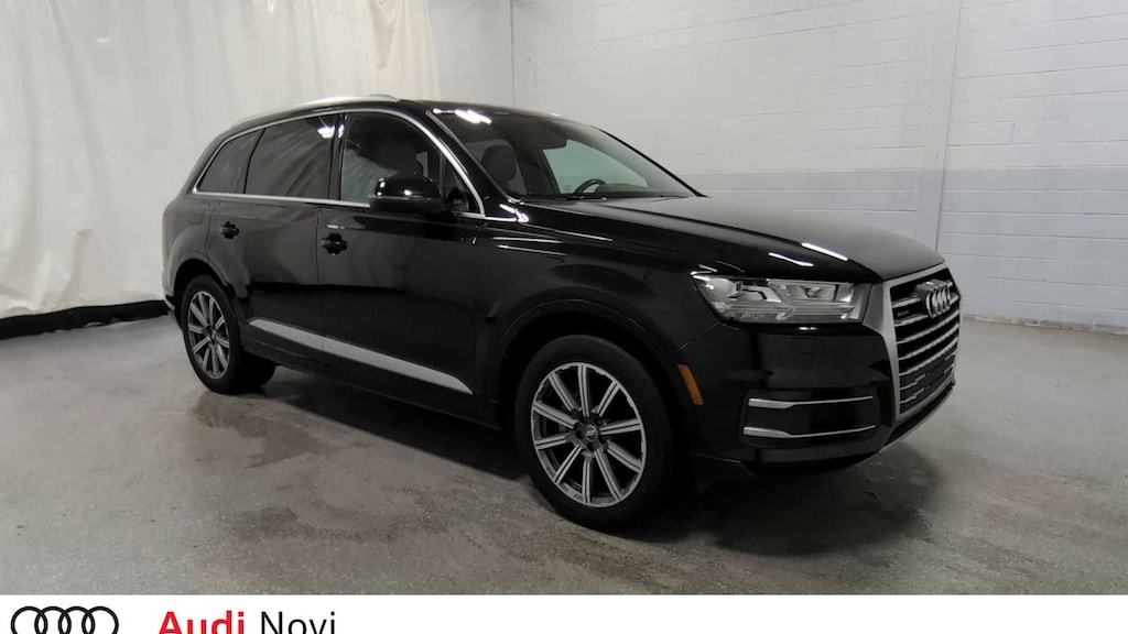 Orca Black Metallic 2019 Audi Q7 45 Premium Plus quattro quattro 8-Speed Automatic with Tiptronic 2.0L 4-Cylinder TFSI Q7 45 Premium Plus quattro, 2.0L 4-Cylinder TFSI, quattro, Orca Black Metallic, Rock Gray w/Leather Seating Surfaces, 3-Spoke Multifunction Steering Wheel w/Paddles, 3D Bose Surround Sound System, 3rd row seats: bench, Audi Phone Box w/Wireless Charging, Audi Side Assist w/Pre Sense Rear, Audi Virtual Cockpit, Black Rubber All-Weather Floor Mats (Set of 4), Cold Weather Package, Convenience Package, Convenience Package Credit, Drivers Seat Mounted Armrest, Front Bucket Seats, Heated Auto-Dimming Power Folding Exterior Mirrors, Heated Front Bucket Seats, Heated front seats, Heated Rear Seats, Leather Seating Surfaces, LED Headlights w/Dynamic Indicators, LED Interior Lighting Package, Navigation system: MMI Navigation plus, Panic alarm, Power Liftgate, Power moonroof, Premium Plus Package, Security system, Topview Camera System, Wheels: 20 10-Spoke-Star Design Bi-Color.
