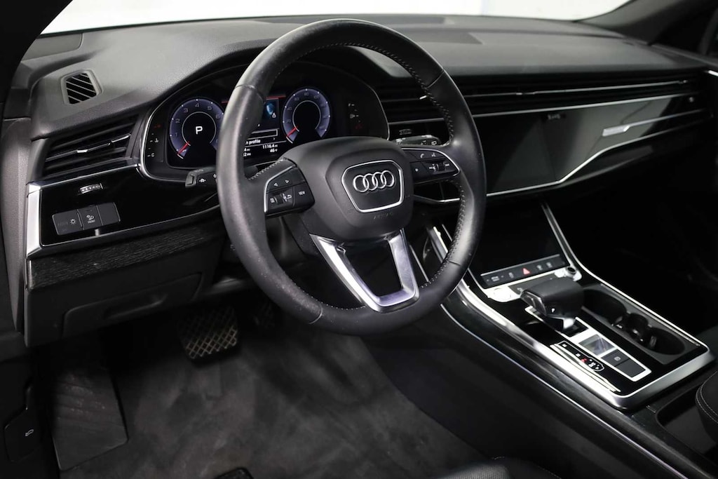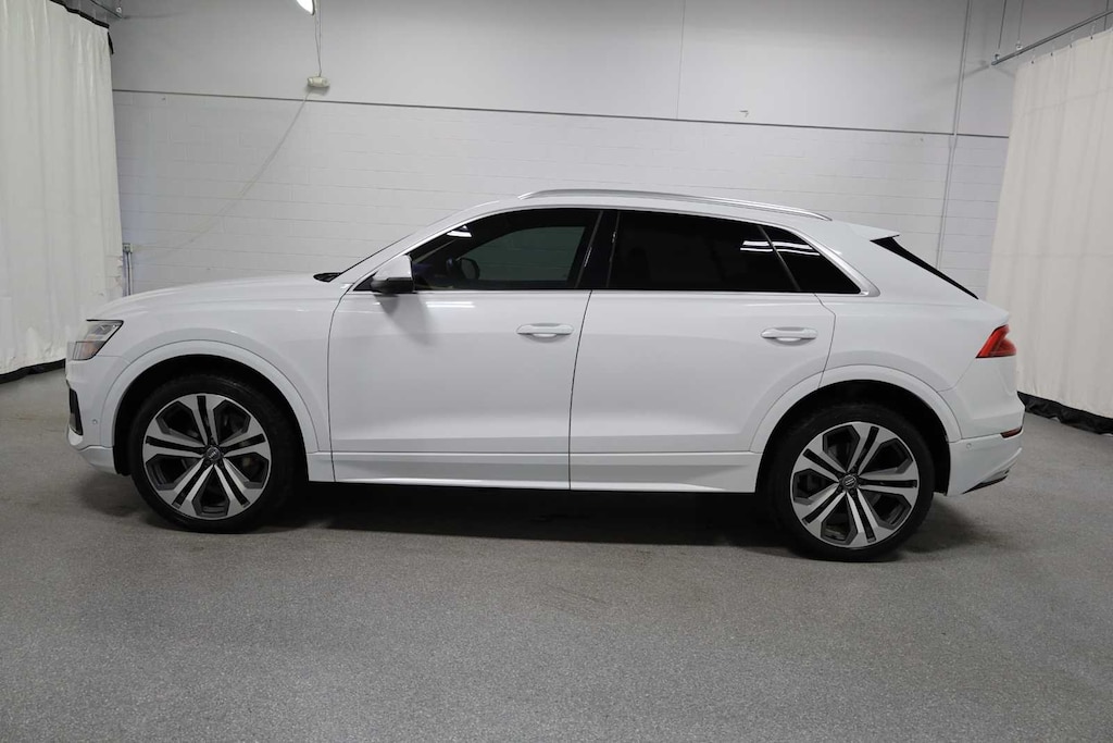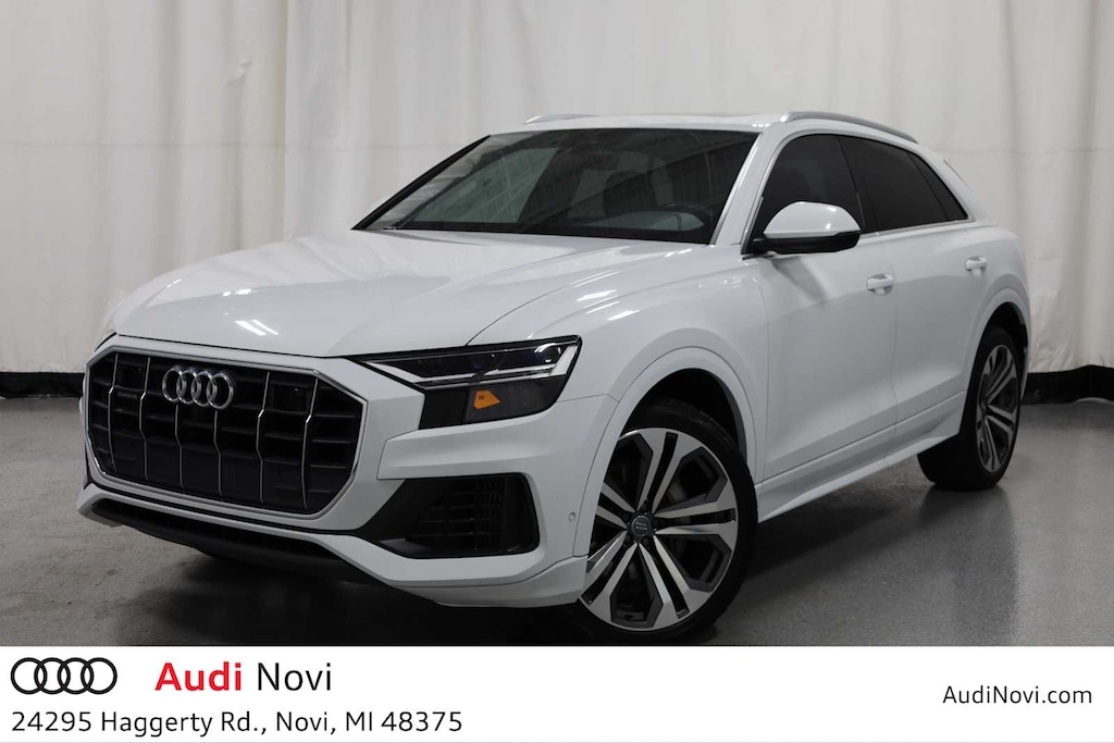 Glacier White Metallic 2019 Audi Q8 3.0T Premium Plus quattro quattro 8-Speed Automatic with Tiptronic 3.0L V6 Turbocharged DOHC 24V LEV3-ULEV125 335hp Q8 3.0T Premium Plus quattro, 3.0L V6 Turbocharged DOHC 24V LEV3-ULEV125 335hp, quattro, Glacier White Metallic, Black w/Leather Seating Surfaces, 4-Zone Climate Control, Ambient Interior Lighting Plus Package, Audi Active Lane Departure Warning, Audi Adaptive Cruise Assist, Audi Phone Box w/Wireless Charging, Audi Side Assist w/Pre Sense Rear, Bang & Olufsen 3D Premium Sound System, Brake assist, Cold Weather Package, Convenience Package, Driver Assistance Package, Heated Front Bucket Seats, Heated front seats, Heated Power Folding Auto-Dimming Exterior Mirrors, Heated Rear Seats, Heated Steering Wheel, High-Beam Assist, Illuminated Door Sills, Power Liftgate, Power moonroof, Power passenger seat, Premium Plus, Top View Camera System, Towing Package, Traffic Sign Recognition, Ventilated Front Seats, Wheels: 21 5-Spoke W-Design.