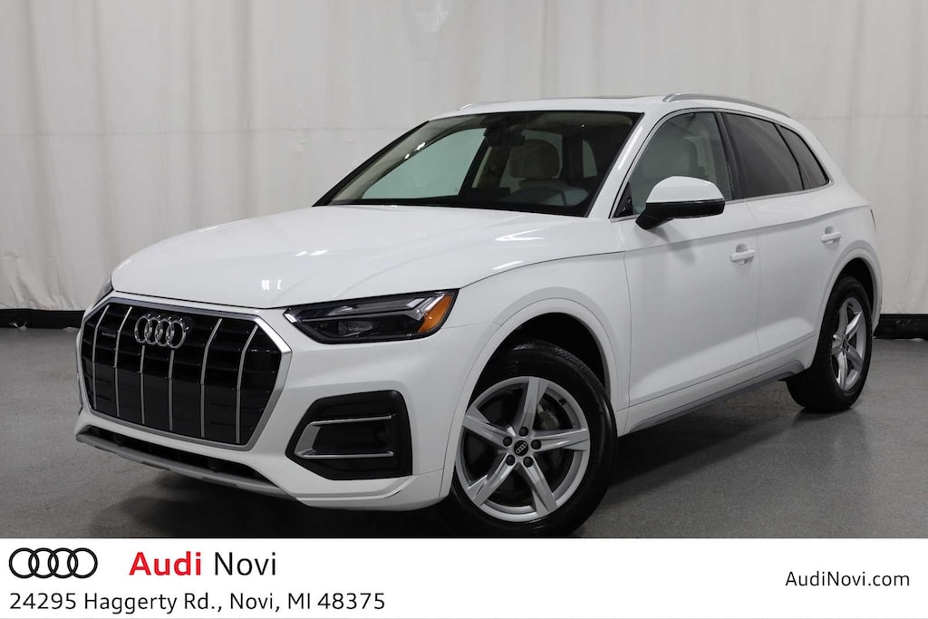 Ibis White 2021 Audi Q5 45 Premium quattro quattro 7-Speed Automatic S tronic 2.0L Turbocharged Q5 45 Premium quattro, 2.0L Turbocharged, 7-Speed Automatic S tronic, quattro, Atlas Beige w/Leather Seating Surfaces, Audi Advanced Key, Auto-Dimming Power Folding Exterior Mirrors, Convenience Package, Driver Seat Memory, Front Bucket Seats, Front Center Armrest, Genuine wood door panel insert, Heated door mirrors, Heated front seats, Heated Steering Wheel, Leather Seating Surfaces, Power Liftgate, Power passenger seat, Radio: Audi Sound System, SiriusXM All Access Service, Wheels: 18 5-Arm-Star Design.