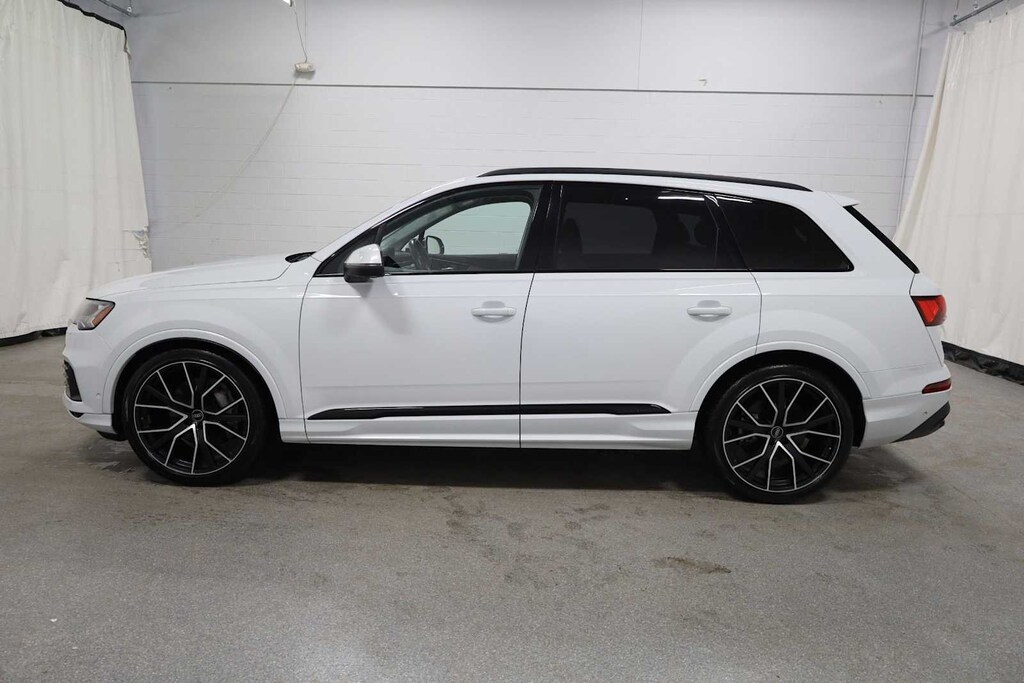 Carrara White 2021 Audi Q7 55 Prestige quattro quattro 8-Speed Automatic with Tiptronic 3.0L TFSI V6 DOHC Q7 55 Prestige quattro, 4D Sport Utility, Carrara White, Saiga Beige w/Leather Seating Surfaces, 4-Zone Automatic Climate Control, Audi Active Lane Assist w/Emergency Assist, Audi Adaptive Cruise Assist w/Traffic Jam Assist, Audi smartphone interface (Apple CarPlay/Android Auto), Auto-dimming Rear-View mirror, Comfort Adaptive Air Suspension, Contour/Ambient LED Interior Lighting Package, Driver & Passenger Front Seats w/Ventilation, Dual-Pane Acoustic Side Windows, Executive Package, Front Center Armrest, Head-Up Display, Heated Front Bucket Seats, Heated front seats, Heated Rear Seats, Individual Contour Front Seats, Intersection Assist, Light Alcantara Headliner, Luxury Package, Matrix-Design LED Headlights, Navigation system: Audi MMI Navigation plus with Touch Response, Power Soft-Closing Doors, Prestige Package, Rear Door/Side Windows & Tailgate Sunshades, Traffic Sign Recognition, Valcona/Cricket Leather Seat Trim, Wheels: 22 Audi Sport 5-V-Spoke Star Design.