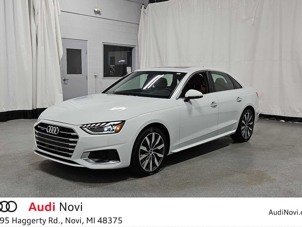 Glacier White Metallic 2023 Audi A4 40 Premium quattro quattro 7-Speed Automatic S tronic 2.0L TFSI 7-Speed Automatic S tronic, quattro, Okapi Brown w/Leather Seating Surfaces, 18 Wheel Package, Adaptive Cruise Control, Alarm System w/Motion Sensor, Audi Advanced Key, Audi Side Assist w/Pre Sense Rear, Auto-Dimming Exterior Mirrors w/Memory, Convenience Package, Heated Front Bucket Seats, Heated front seats, Heated Steering Wheel, Memory for Drivers Seat, Parking System Plus, Power moonroof, SiriusXM w/360L, Wheels: 18 10-Spoke-Dynamic Design Bi-Color Finish.