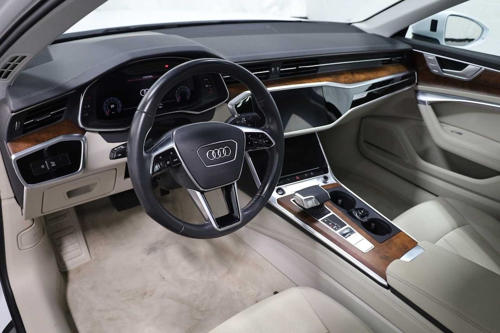 Glacier White 2023 Audi A6 55 Premium Plus quattro quattro 7-Speed Automatic 3.0L V6 Turbocharged DOHC 24V LEV3-ULEV70 335hp 4D Sedan, 3.0L V6 Turbocharged DOHC 24V LEV3-ULEV70 335hp, quattro, Glacier White, Pearl Beige Leather, 4-Zone Automatic Climate Control, ABS brakes, Adaptive Cruise Assist w/Lane Guidance, Alloy wheels, Audi Phone Box w/Wireless Charging, Audi Side Assist w/Pre Sense Rear, Bang & Olufsen Premium Sound System w/3D Sound, Black Optic Sport Package, Compass, Contrast Stitching on Door Armrests & Knee Bolster, Convenience Package, Electronic Stability Control, Executive Package, Front dual zone A/C, Heated door mirrors, Heated Front Seats, Heated front seats, Heated Rear Seats, Heated Steering Wheel, High-Gloss Black Exterior Elements, Illuminated entry, Low tire pressure warning, Matrix-Design LED Headlights, Multicolor Contour/Ambient LED Int Lighting Pkg, Navigation system: MMI Navigation plus, Open & Close Power Trunk, Power moonroof, Premium Plus Package, Remote keyless entry, Sport Suspension (-20 mm), Top View Camera System w/Virtual 360 View, Traction control, Ventilated Front Seats, Wheels: 20 Titanium Finish 5-V-Spoke-Star Design.