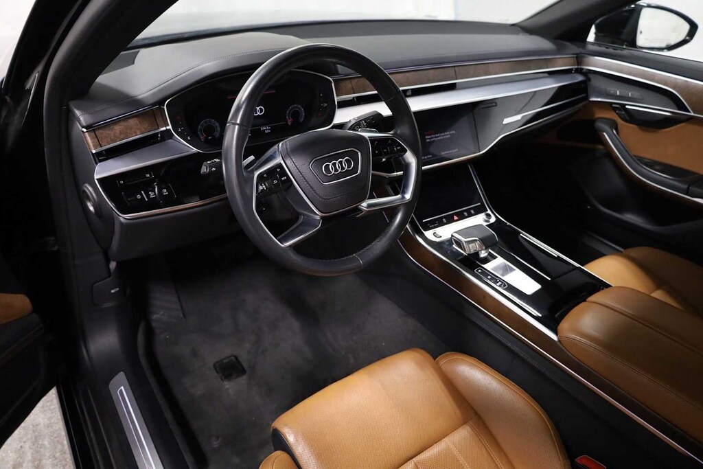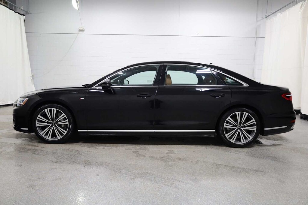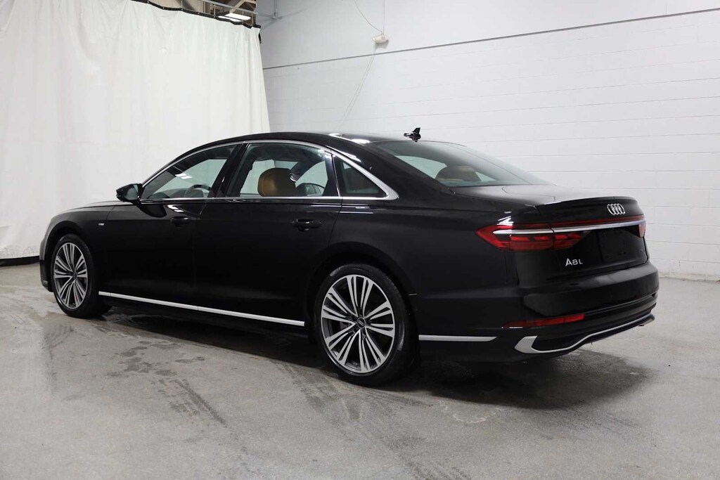 Mythos Black Metallic 2023 Audi A8 L 55 quattro quattro 8-Speed Automatic with Tiptronic 3.0L V6 Turbocharged DOHC 24V LEV3-ULEV70 335hp A8 L 55 quattro, 4D Sedan, 3.0L V6 Turbocharged DOHC 24V LEV3-ULEV70 335hp, 8-Speed Automatic with Tiptronic, quattro, Mythos Black Metallic, Cognac Brown w/Valcona Leather Seat Upholstery, 20 10-Parallel-Spoke-Design Wheels, 22-Way Heated Multi-Contour Comfort Front Seats, Adaptive suspension, Alu-Optic Buttons, AM/FM radio: SiriusXM, Audi Adaptive Cruise Assist w/Lane Guidance, Audi Side Assist, Bang & Olufsen Premium Sound System w/3D Sound, Comfort Plus Package, Contour/Ambient LED Interior Lighting Package, Dual-Pane Acoustic Glass for Side Windows, Dynamic All-Wheel-Steering, Executive Package, Extended Leather Package, Front Bucket Seats, Front Seat Massage Function, HD Matrix-Design LED Headlights, Head restraints memory, Head-Up Display, Heated door mirrors, Heated Front Seat Armrests, Heated Rear Outboard Seats, Heated Rear Seat Armrests, Heated Steering Wheel, Intersection Assist, Luxury Package, Memory seat, Navigation system: MMI Navigation plus, Power door mirrors, Power moonroof, Pwr Rr Outboard Seats w/Lumbar & Memory Functions, Rear Matrix LED Reading Lights, Rear Outboard Seat Ventilation w/Massage, Rear Seat Remote Control, Remote Park Assist Plus, Seatbelt memory, Steering wheel mounted audio controls, Telescoping steering wheel, Traffic Sign Recognition, Valcona Leather Seat Upholstery.