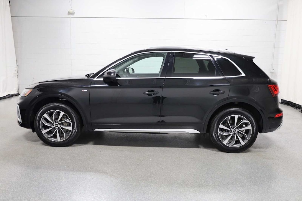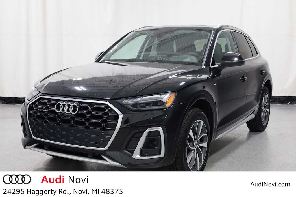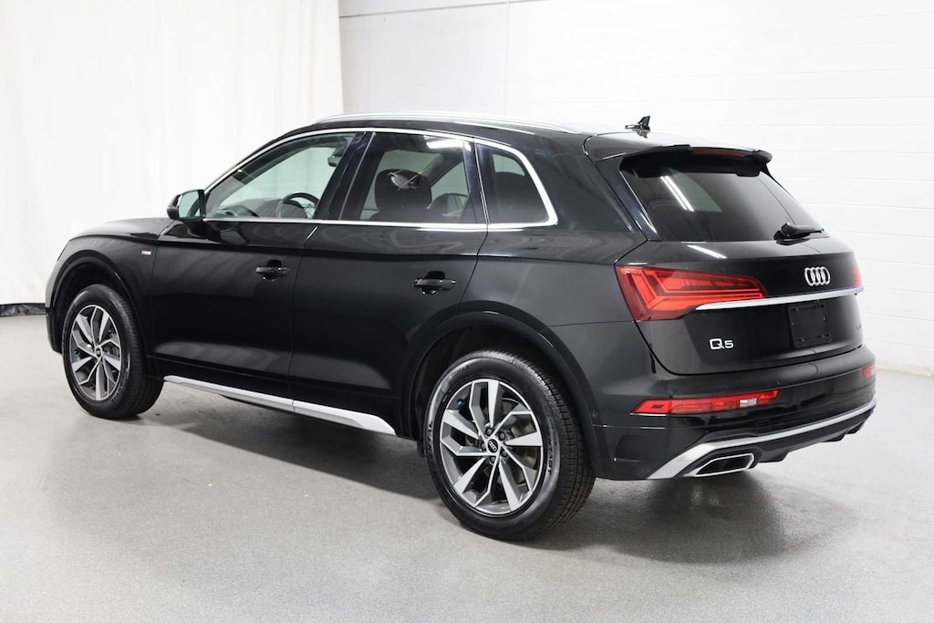 Mythos Black Metallic 2023 Audi Q5 45 S line Prestige quattro quattro 7-Speed Automatic S tronic 2.0L Turbocharged Q5 45 S line Prestige quattro, 4D Sport Utility, 2.0L Turbocharged, quattro, Mythos Black Metallic, Black w/Leather Seating Surfaces, Audi Active Lane Assist, Audi Advanced Key, Audi Connect PLUS, Audi Phone Box, Audi Virtual Cockpit Plus, Auto-Dimming Power Folding Exterior Mirrors, Bang & Olufsen Sound System w/3D Sound, Convenience Package, Driver Seat Memory, Dual Pane Acoustic Glass for Front Side Windows, Hands-On Detection Steering Wheel, Head-Up Display, Heated & Cooled Front Cup Holder, Heated Rear Seats, Heated Steering Wheel, Leatherette Covered Center Console & Door Armrests, LED Interior Lighting Plus Package, Manual Rear Side Window Sunshades, Matrix-Design LED Headlights w/Headlight Washers, MMI Navigation Plus, Navigation Package, Panoramic Sunroof, Park Assist, Power Adjustable Steering Column, Power Liftgate, Power steering, Power windows, Prestige Package, SiriusXM w/360L, Top View Camera System, Traffic Jam Assist, Traffic Sign Recognition, Ventilated Front Sport Seats w/4-Way Power Lumbar, Warm Weather Package, Wheels: 19 5-Double-Arm Design Bi-Color Finish.