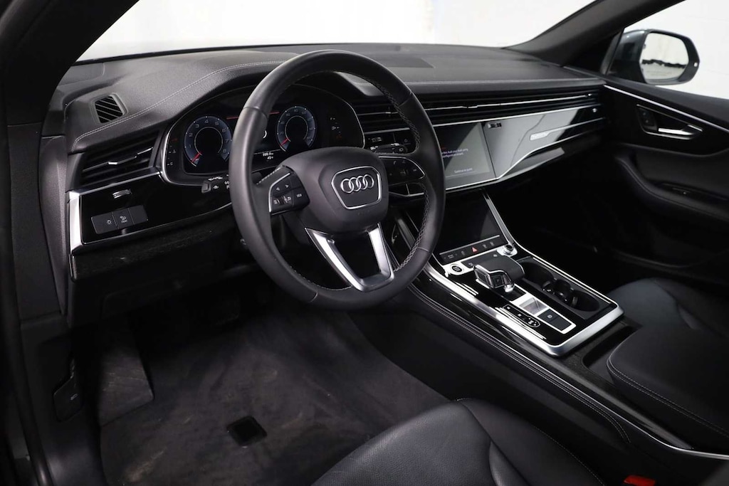 Audi Certified. Daytona Gray Pearl Effect 2023 Audi Q8 55 Premium Plus quattro quattro 8-Speed Automatic with Tiptronic 3.0L V6 Turbocharged DOHC 24V LEV3-ULEV70 335hp Q8 55 Premium Plus quattro, 4D Sport Utility, 3.0L V6 Turbocharged DOHC 24V LEV3-ULEV70 335hp, 8-Speed Automatic with Tiptronic, quattro, Daytona Gray Pearl Effect, Black w/Leather Seating Surfaces, 4-Zone Automatic Climate Control, Audi Adaptive Cruise Assist w/Lane Guidance, Audi Phone Box w/Wireless Charging, Bang & Olufsen 3D Premium Sound System, Black Roof Rails, Contour/Ambient LED Interior Lighting Package, Convenience Package, Dual-Pane Acoustic Glass for Side Windows, Executive Package, Front Seats w/Ventilation, Heated front seats, Heated Rear Seats, Heated Steering Wheel, High-Gloss Black Exterior Elements, Illuminated Door Sills, Navigation system: Audi MMI Navigation plus with Touch Response, Power moonroof: Panoramic, Power Rear Side Window Sunshades, Premium Plus Package, Red Brake Calipers, S Line Exterior, S Line Fender Badges, S Line Illuminated Door Sills, S Line Plus Package, S Line Style Package, Top View Camera System, Wheels: 22 5-V-Spoke-Star Design Bi-Color Finish.