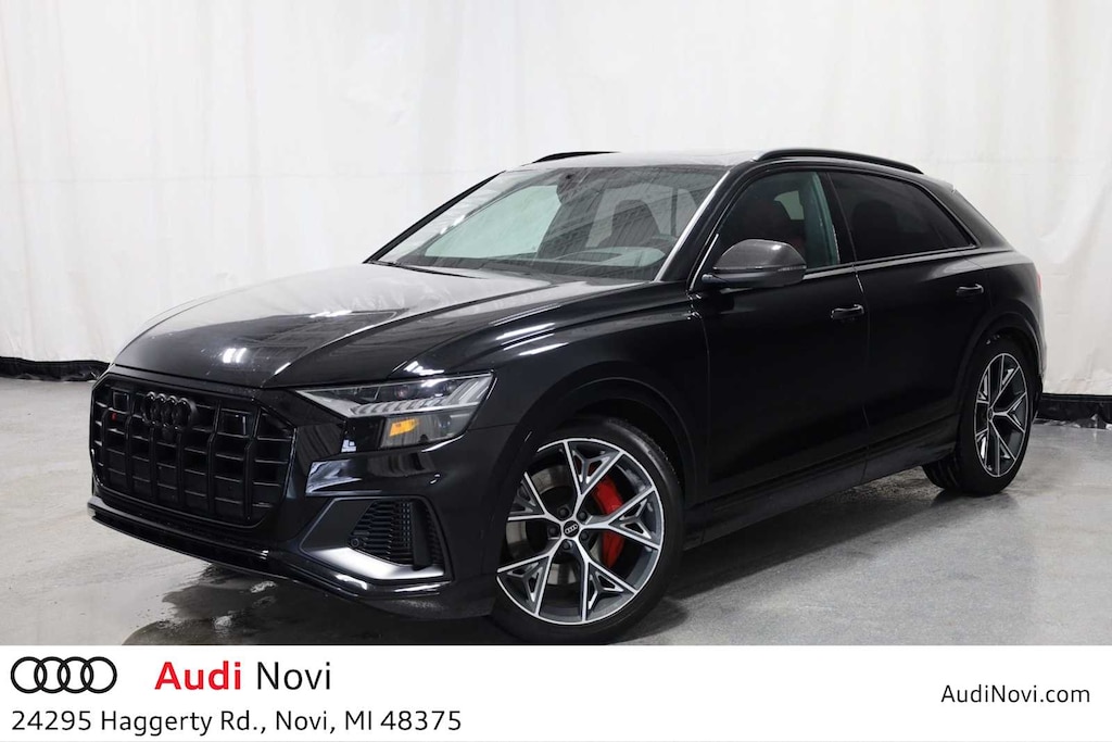 Audi Certified!!! Mythos Black Metallic 2023 Audi SQ8 4.0T Prestige quattro quattro 8-Speed Automatic 4.0L V8 Turbocharged DOHC 32V LEV3-ULEV125 500hp SQ8 4.0T Prestige quattro, 4D Sport Utility, 4.0L V8 Turbocharged DOHC 32V LEV3-ULEV125 500hp, 8-Speed Automatic, quattro, Arras Red w/Valcona Leather Seating Surfaces, Alu Touch-Sensitive Interior Buttons, Bang & Olufsen 3D Advanced Sound System, Black Audi Rings & Badges, Black Dinamica Headliner, Black Optic Package, Black Roof Rails, Brake assist, Carbon Fiber Door Inlays & Rear Bumper Trim, Carbon Fiber Exterior Mirror Housings, Carbon Optic Package, Contour/Ambient LED Interior Lighting Package, Driver & Passenger Front Seats w/Ventilation, Dual-Pane Acoustic Glass, Electronic Stability Control, Executive Package, Extended Leather Package, Exterior Parking Camera Rear, Front Bucket Seats, Front Center Armrest, Front Seat Massage Functions, Head-Up Display, Heated front seats, Heated Rear Seats, Heated S Sport Seats, Heated steering wheel, High-Gloss Black Exterior Elements, Illuminated entry, Intersection Assist, Navigation System, Navigation system: Audi MMI Navigation plus with Touch Response, Power Liftgate, Power moonroof: Panoramic, Power Rear Side Window Sunshades, Power Soft-Closing Doors, Prestige Package, Radio: Bang & Olufsen 3D Premium Sound System, Red Brake Calipers, Remote Park Assist Plus, Sports Exhaust Resonator Kit, SQ8 Luxury Package, Tow Hitch Receiver, Towing 7 Pin Connector, Towing Package, Traffic Sign Recognition, Wheels: 22 5-V-Spoke Star Design, Wheels: 22 5-Y-Spoke Design Graphite Gray Finish.