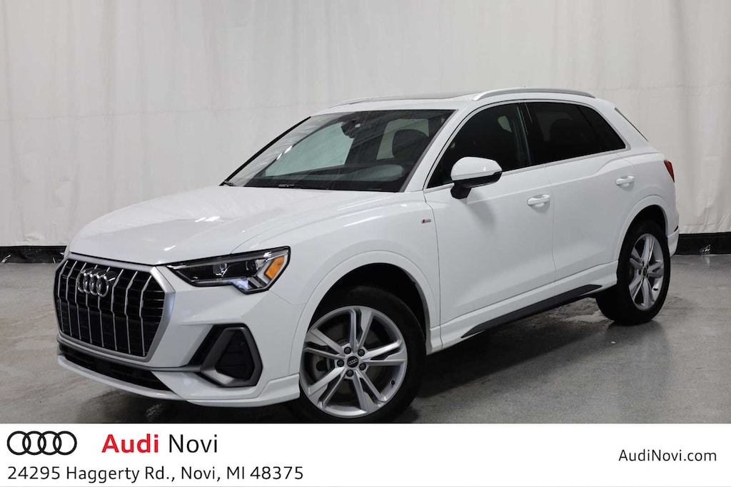 Certified. Arkona White 2024 Audi Q3 Premium Plus S Line quattro quattro 8-Speed Automatic with Tiptronic 2.0L 4-Cylinder TFSI Q3 Premium Plus S Line quattro, 4D Sport Utility, 2.0L 4-Cylinder TFSI, 8-Speed Automatic with Tiptronic, quattro, Arkona White, Black w/Leather Seating Surfaces, 12.3 Audi Virtual Cockpit Plus Screen, 19 Wheel Package, Alarm w/Motion Sensor, Alexa Integration, Audi Advanced Key, Audi Connect NAV & PLUS, Audi MMI Navigation Plus, Auto-Dimming Power-Folding Exterior Mirrors, Auto-Dimming Rear-View Mirror, Convenience Package, Driver Seat Memory, Garage Door Opener (HomeLink), Heated Front Bucket Seats, Heated front seats, Leather Seating Surfaces, Leather Shift Knob, LED Interior Lighting Package, LED Interior Lighting Plus Package, Power Liftgate, Power moonroof: Panoramic, Premium Plus Package, SiriusXM, SiriusXM w/360L, Sonos Premium Sound System w/3D Sound, Technology Package, Top View Camera System, Traffic Sign Recognition, Wheels: 19 5-Double-Spoke Dynamic Design, Wireless Apple CarPlay/Android Auto, Wireless Phone Charging Pad.