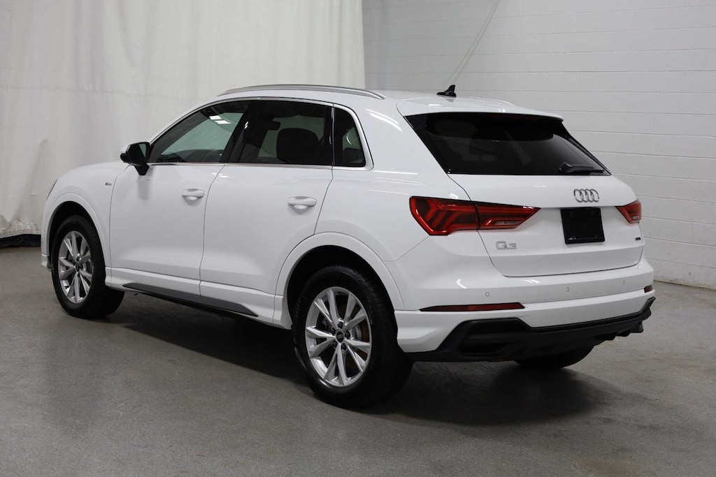 Audi Certified!!! White 2025 Audi Q3 Premium S Line quattro quattro 8-Speed Automatic with Tiptronic 2.0L 4-Cylinder TFSI Q3 Premium S Line quattro, 4D Sport Utility, 2.0L 4-Cylinder TFSI, quattro, White, Black Leather, Alarm with Motion Sensor, Audi Advanced Key, Auto-Dimming Power-Folding Exterior Mirrors, Auto-Dimming Rear-View Mirror, Convenience Package, Driver Seat Memory, Front Bucket Seats, Front Center Armrest, Garage Door Opener (HomeLink), Heated Front Bucket Seats, Heated front seats, Illuminated entry, Leather Seating Surfaces, LED Interior Lighting Package, Navigation System, Passenger vanity mirror, Power Liftgate, Power moonroof: Panoramic, Rear reading lights, SiriusXM with 360L (3 Months Trial), Wheels: 18 5-V-Spoke-S Design, Wireless Phone Charging Pad.