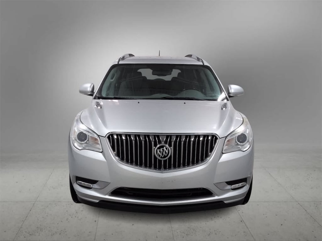 Enclave Convenience Group is nicely equipped with 4500lbs Trailering Package (Heavy-Duty Cooling System and Trailer Hitch), Preferred Equipment Group 1SD, FWD, 3.16 Axle Ratio, 3rd row seats: split-bench, 4-Wheel Disc Brakes, 6 Speakers, 7-Passenger Seating, ABS brakes, Air Conditioning, Alloy wheels, AM/FM radio: SiriusXM, Auto-dimming Rear-View mirror, Automatic temperature control, Brake assist, Bumpers: body-color, CD player, Cloth Seat Trim, Compass, Delay-off headlights, Driver door bin, Driver vanity mirror, Dual front impact airbags, Dual front side impact airbags, Electronic Stability Control, Emergency communication system: OnStar Guidance, Exterior Parking Camera Rear, Four wheel independent suspension, Front anti-roll bar, Front Bucket Seats, Front Center Armrest w/Storage, Front dual zone A/C, Front reading lights, Fully automatic headlights, Garage door transmitter, Heated door mirrors, High intensity discharge headlights: Bi-Xenon, Illuminated entry, Leather steering wheel, Low tire pressure warning, Occupant sensing airbag, Outside temperature display, Overhead airbag, Panic alarm, Passenger door bin, Passenger vanity mirror, Power door mirrors, Power driver seat, Power Liftgate, Power passenger seat, Power steering, Power windows, Radio data system, Radio: Color Touch AM/FM/CD w/IntelliLink, Rear air conditioning, Rear anti-roll bar, Rear Parking Sensors, Rear reading lights, Rear window defroster, Rear window wiper, Remote keyless entry, Roof rack: rails only, Security system, SiriusXM Satellite Radio, Speed control, Speed-sensing steering, Spoiler, Steering wheel mounted audio controls, Tachometer, Telescoping steering wheel, Tilt steering wheel, Traction control, Trip computer, Turn signal indicator mirrors, Variably intermittent wipers, Voltmeter, and Wheels: 19 10-Spoke Aluminum.