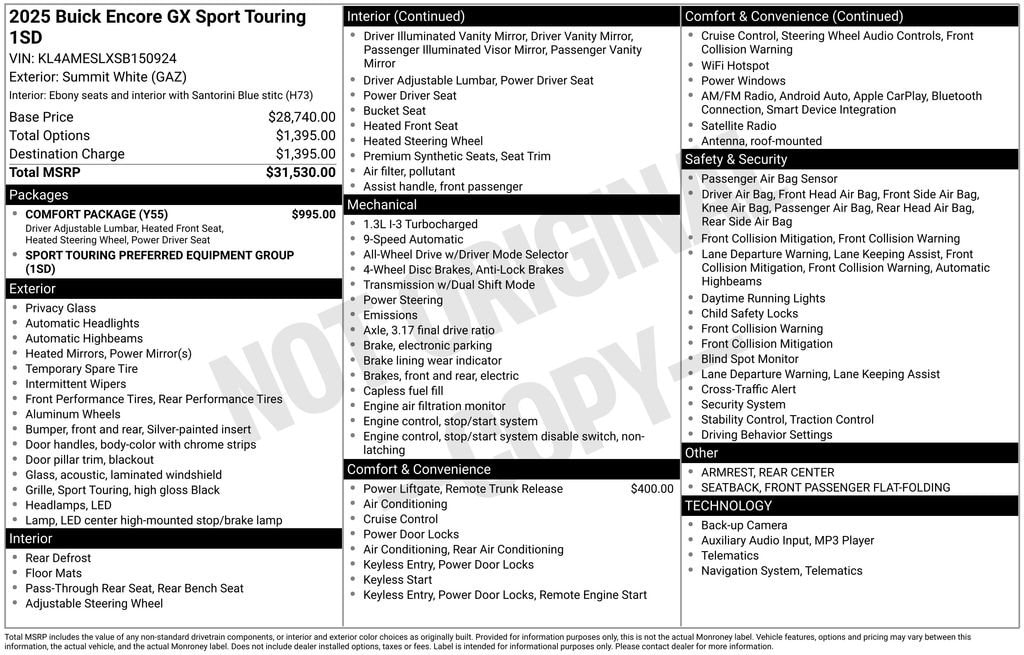 Experience the perfect blend of style, technology, and capability in the 2025 Buick Encore GX Sport Touring. Visit our showroom today and let us demonstrate how this exceptional compact SUV can enhance your driving experience.
