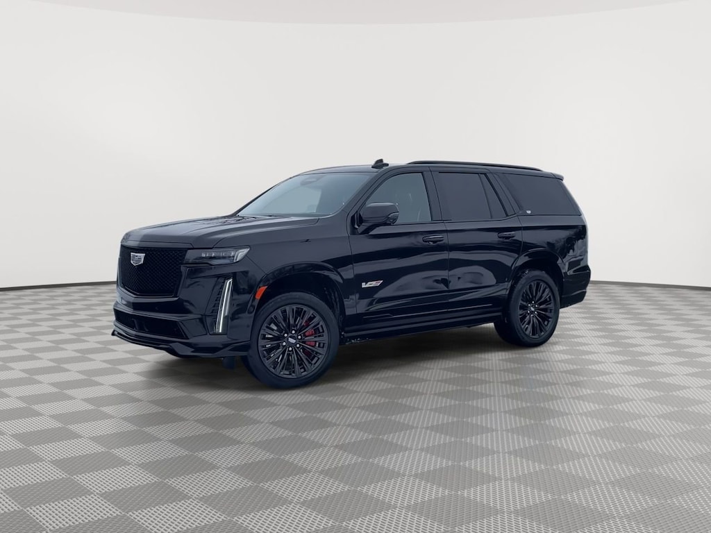 Packed with power, our One Owner 2023 Cadillac Escalade-V 4WD with the Onyx Pack helps move your family with undeniable strength and luxury in Black Raven! Motivated by a SuperCharged 6.2 Liter V8 supplying 682hp to a 10 Speed Automatic transmission for sportscar-style acceleration and SUV-style capability. This Four Wheel Drive SUV also shows off almost unshakeable handling, thanks to Magnetic Ride Control and an adaptive air suspension, and it sees nearly 16mpg on the highway. Fiercely fashionable, our Escalade adds bold flair with LED lighting, a panoramic sunroof, a hands-free liftgate, power assist steps, and our Onyx Pack for 22-inch laser-etched Satin Graphite wheels, monochrome emblems, and a gloss-black nameplate.