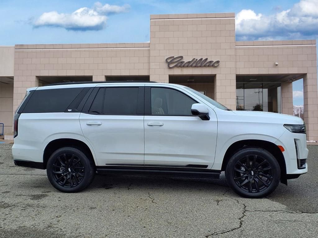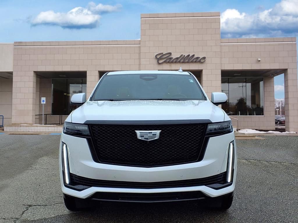 Our Accident Free, One Owner, Low Mileage 2024 Cadillac Escalade Sport 4WD with the Onyx Pack is a powerful SUV packed with premium features in Crystal White Tricoat! Motivated by a 6.2 Liter V8 providing 420hp to a 10 Speed Automatic transmission for outstanding strength. This Four Wheel Drive SUV is tuned for taking on your world with Magnetic Ride Control and an electronic limited-slip differential, and it scores nearly 18mpg on the highway. Designed to draw a crowd, our Escalade welcomes our Onyx Pack to add 22-inch gloss-black wheels, a gloss-black nameplate, and monochrome emblems to a panoramic sunroof, LED lighting, a hands-free liftgate, gloss-black roof rails, assist steps, and a classic Cadillac grille.