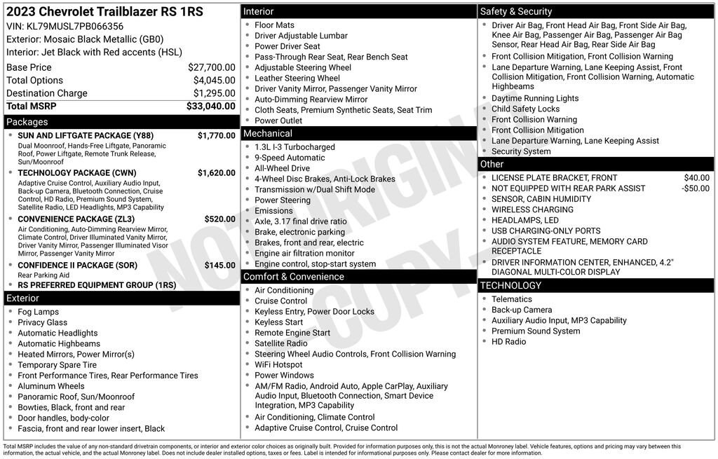 Experience the perfect balance of style, performance, and technology with the 2023 Chevrolet TrailBlazer RS. Visit our showroom today and let us demonstrate how this exceptional SUV can elevate your driving experience.