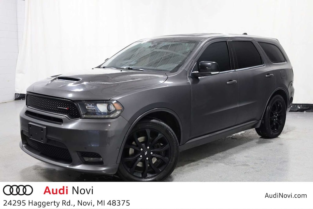 Granite Metallic Clearcoat 2019 Dodge Durango R/T AWD 8-Speed Automatic HEMI 5.7L V8 Multi Displacement VVT Sunroof/Moonroof, Durango R/T, 4D Sport Utility, HEMI 5.7L V8 Multi Displacement VVT, 8-Speed Automatic, AWD, Granite Metallic Clearcoat, Black Leather, 1 USB Charging Port in Console, 12V Auxiliary Power Outlet In Console, 2nd Row Console w/Armrest & Storage, 3rd Row Floor Mat & Full Console, Blacktop Package, Gloss Black Badges, Gloss Black Exterior Mirrors, Illuminated Rear Cupholders, Quick Order Package 22S, Wheels: 20 x 8.0 High Gloss Black Aluminum (WHB).