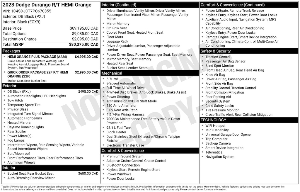Recent Arrival! Clean CARFAX. 2023 Dodge Durango R/T HEMI Orange Is nicely equipped with HEMI Orange Plus Package (19 harman/kardon Amplified Speakers w/Subwoofer, 825 Watt Amplifier, Advanced Brake Assist, Black Roof Rails, Forged Carbon Fiber Interior Accents, Integrated Roof Rail Crossbars, Lane Departure Warning Plus, Power Sunroof, Suede Headliner, and Suede Wrapped Interior Accents), Orange Sport Package, Quick Order Package 22F HEMI Orange (115V Auxiliary Power Outlet, 2nd Row Fold/Tumble Captain Chairs, Adaptive Cruise Control w/Stop, Black Stripe w/Orange Tracer, Dual Remote USB Port - Charge Only, Floor Console w/Leather Armrest, Full Speed Forward Collision Warning Plus, Heated Second Row Seats, Leather Trimmed Bucket Seats w/Logo, Midnight Metallic Gray Badge, Orange Accent Stitching, Power 8-Way Driver Memory 8-Way Passenger Seats, Power Driver/Passenger 4-Way Lumbar Adjust, Power Tilt & Telescopic Steering Column, Premium Instrument Panel, Radio/Driver Seat/Mirrors Memory, Satin Black Dodge Tail Lamp Badge, Ventilated Front Seats, and Wheels: 20" x 8.0" Black Noise Aluminum), AWD, 3.09 Rear Axle Ratio, 3rd row seats: split-bench, 4-Wheel Disc Brakes, 9 Speakers, ABS brakes, Air Conditioning, Alloy wheels, AM/FM radio: SiriusXM w/360L, Apple CarPlay/Android Auto, Auto High-beam Headlights, Auto-dimming Rear-View mirror, Auto-leveling suspension, Automatic temperature control, Brake assist, Bumpers: body-color, Cloth Bucket Seats w/Shift Insert, Compass, Delay-off headlights, Driver door bin, Driver vanity mirror, Dual front impact airbags, Dual front side impact airbags, Electronic Stability Control, Emergency communication system: SiriusXM Guardian, Exterior Mirrors w/Heating Element, Four wheel independent suspension, Front anti-roll bar, Front Bucket Seats, Front Center Armrest w/Storage, Front dual zone A/C, Front reading lights, Fully automatic headlights, Garage door transmitter, Gloss Black Exterior Mirrors, Heated door mirrors, Heated front seats, Heated steering wheel, Illuminated entry, Knee airbag, Leather steering wheel, Low tire pressure warning, Navigation system: TomTom, Occupant sensing airbag, Outside temperature display, Overhead airbag, Overhead console, Panic alarm, ParkView Rear Back-Up Camera, Passenger door bin, Passenger vanity mirror, Power door mirrors, Power driver seat, Power Liftgate, Power steering, Power windows, Radio data system, Radio: Uconnect 5 Nav w/10.1" Display, Rain sensing wipers, Rear air conditioning, Rear anti-roll bar, Rear Load Leveling Suspension, Rear reading lights, Rear seat center armrest, Rear window defroster, Rear window wiper, Red Accent Stitching, Remote keyless entry, Security system, Speed control, Speed-sensing steering, Speed-Sensitive Wipers, Split folding rear seat, Spoiler, Sport steering wheel, Steering wheel mounted audio controls, Tachometer, Telescoping steering wheel, Tilt steering wheel, Traction control, Trip computer, Variably intermittent wipers, Voltmeter, and Wheels: 20" x 8.0" Fine Silver.
