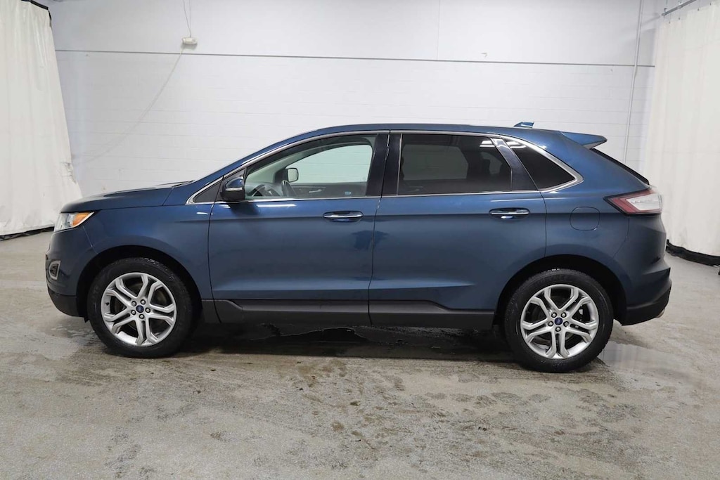 Too Good To Be Blue Metallic 2016 Ford Edge Titanium AWD 6-Speed Automatic EcoBoost 2.0L I4 GTDi DOHC Turbocharged VCT EcoBoost 2.0L I4 GTDi DOHC Turbocharged VCT, 6-Speed Automatic, AWD, Too Good To Be Blue Metallic, Auto-Dimming Drivers Sideview Mirror, BLIS Blind Spot Information System, Equipment Group 301A, Heated front seats, Heated Rear-Seats, Panoramic Vista Roof, Perforated Leather Trimmed Heated/Cooled Buckets, Power Converter 110V Outlet, Radio: AM/FM Stereo w/Single CD/Navigation, Remote Start System, SiriusXM Radio, SiriusXM Traffic & Travel Link, Technology Package, Wheels: 19 Aluminum Premium Painted Luster Nickel.