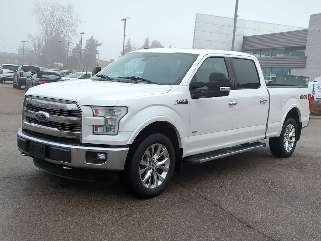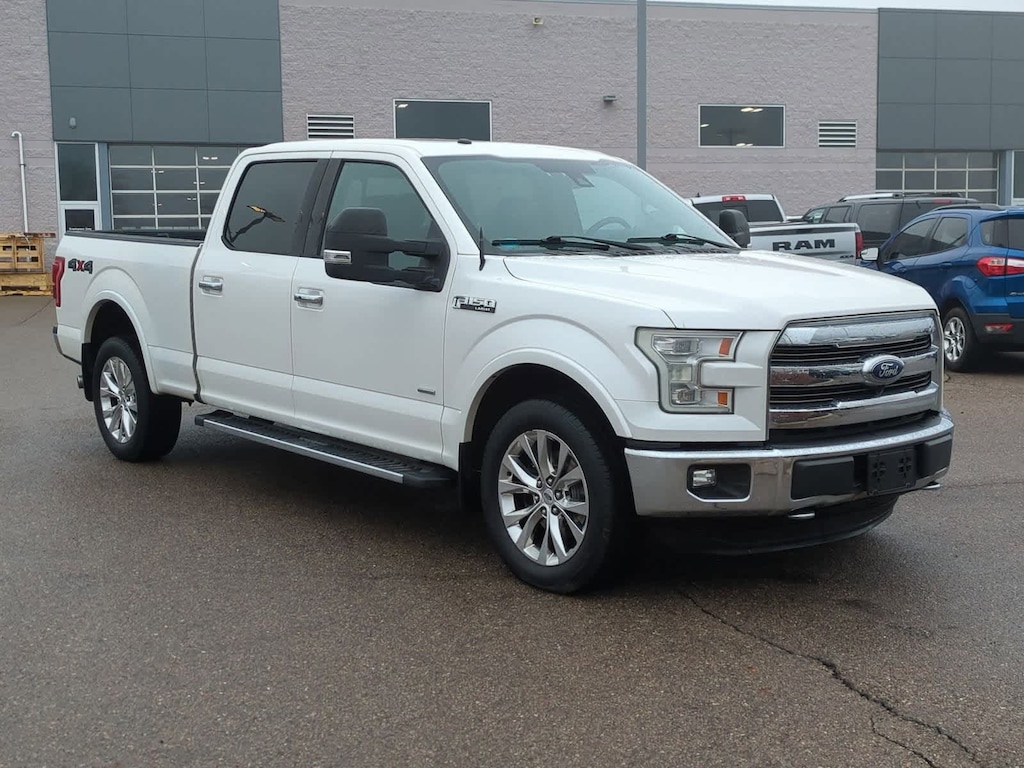 2016 Ford F-150 Lariat White Platinum Metallic Tri-Coat 4WD F-150 Lariat 6.5Ft Bed, 4D SuperCrew, 4WD, Black w/Leather-Trimmed Bucket Seats, 110V/400W Outlet, 2nd Row Heated Seats, Auto High Beam w/Rain-Sensing Windshield Wipers, Auxiliary Transmission Oil Cooler, BLIS Blind Spot Information System, Chrome 3-Bar Style Grille w/Chrome Surround, Chrome Angular Step Bars, Chrome Door & Tailgate Handles w/Body-Color Bezel, Chrome Skull Caps on Exterior Mirrors, Class IV Trailer Hitch Receiver, Electronic Locking w/3.55 Axle Ratio, Equipment Group 502A Luxury, GVWR: 7,000 lbs Payload Package, Heated Steering Wheel, Integrated Trailer Brake Controller, Lane-Keeping System, Lariat Chrome Appearance Package, Leather-Trimmed Bucket Seats, LED Side-Mirror Spotlights, Max Trailer Tow Package, Power Glass Sideview Mirr w/Chrome Skull Caps, Power Tilt/Telescoping Steering Column w/Memory, Pro Trailer Backup Assist, Quad Beam LED Headlamps & Taillamps, Radio: Sony Single CD w/HD & SiriusXM Satellite, Remote Start System w/Remote Tailgate Release, Reverse Sensing System, Single-Tip Chrome Exhaust, Technology Package, Trailer Tow Package, Universal Garage Door Opener, Upgraded Front Stabilizer Bar, Voice-Activated Navigation, Wheels: 18 Chrome-Like PVD.