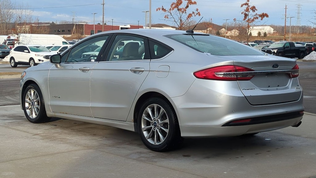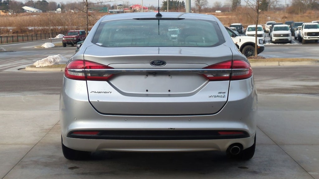 Recent Arrival! Clean CARFAX. 2017 Ford Fusion Hybrid SE Is nicely equipped with Equipment Group 600A, Fusion SE Hybrid Technology Package ((2) 4.2" Driver Configurable LCD Display, Power Converter 110V Outlet, and SYNC 3 Communications & Entertainment System), I4 Hybrid, 4-Wheel Disc Brakes, 9 Speakers, ABS brakes, Air Conditioning, All-Weather Front & Rear Floor Mats, Alloy wheels, AM/FM radio: SiriusXM, Automatic temperature control, Brake assist, Bumpers: body-color, CD player, Cloth Front Bucket Seats, Compass, Delay-off headlights, Driver door bin, Driver vanity mirror, Dual front impact airbags, Dual front side impact airbags, Electronic Stability Control, Emergency communication system: 911 Assist, Exterior Parking Camera Rear, Four wheel independent suspension, Front anti-roll bar, Front Bucket Seats, Front Center Armrest, Front dual zone A/C, Front License Plate Bracket, Front reading lights, Fully automatic headlights, Illuminated entry, Knee airbag, Low tire pressure warning, Occupant sensing airbag, Outside temperature display, Overhead airbag, Overhead console, Paint Protection Film by 3M, Panic alarm, Passenger door bin, Passenger vanity mirror, Power door mirrors, Power driver seat, Power passenger seat, Power steering, Power windows, Radio data system, Radio: AM/FM Stereo w/MP3/Single-CD Player, Rear anti-roll bar, Rear reading lights, Rear seat center armrest, Rear window defroster, Remote keyless entry, Security system, Speed control, Speed-sensing steering, Speed-Sensitive Wipers, Split folding rear seat, Steering wheel mounted audio controls, SYNC Communications & Entertainment System, Tachometer, Telescoping steering wheel, Tilt steering wheel, Traction control, Trip computer, Variably intermittent wipers, and Wheels: 17" Premium Painted Luster Nickel.