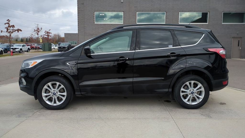 2018 Ford Escape SE Is nicely equipped with 1.5L EcoBoost Class II Trailer Tow Package, Equipment Group 200A, SE SYNC 3 Package (SYNC 3 Communications & Entertainment System and SYNC Connect), 4WD, 3.51 Axle Ratio, 4-Wheel Disc Brakes, 6 Speakers, ABS brakes, Air Conditioning, Alloy wheels, AM/FM radio: SiriusXM, Automatic temperature control, Brake assist, Bumpers: body-color, CD player, Compass, Delay-off headlights, Driver door bin, Driver vanity mirror, Dual front impact airbags, Dual front side impact airbags, Electronic Stability Control, Emergency communication system: 911 Assist, Exterior Parking Camera Rear, Four wheel independent suspension, Front anti-roll bar, Front Bucket Seats, Front Center Armrest, Front dual zone A/C, Front fog lights, Front reading lights, Fully automatic headlights, Heated front seats, Heated Unique Cloth Front Bucket Seats, Illuminated entry, Knee airbag, Low tire pressure warning, Occupant sensing airbag, Outside temperature display, Overhead airbag, Overhead console, Panic alarm, Passenger door bin, Passenger vanity mirror, Power door mirrors, Power driver seat, Power steering, Power windows, Radio data system, Radio: AM/FM Stereo w/Single-CD/MP3 Player, Rear anti-roll bar, Rear seat center armrest, Rear window defroster, Rear window wiper, Remote keyless entry, Roof rack: rails only, Security system, Speed control, Speed-sensing steering, Split folding rear seat, Steering wheel mounted audio controls, SYNC Communications & Entertainment System, Tachometer, Telescoping steering wheel, Tilt steering wheel, Traction control, Trip computer, Variably intermittent wipers, and Wheels: 17" Sparkle Silver-Painted Aluminum.