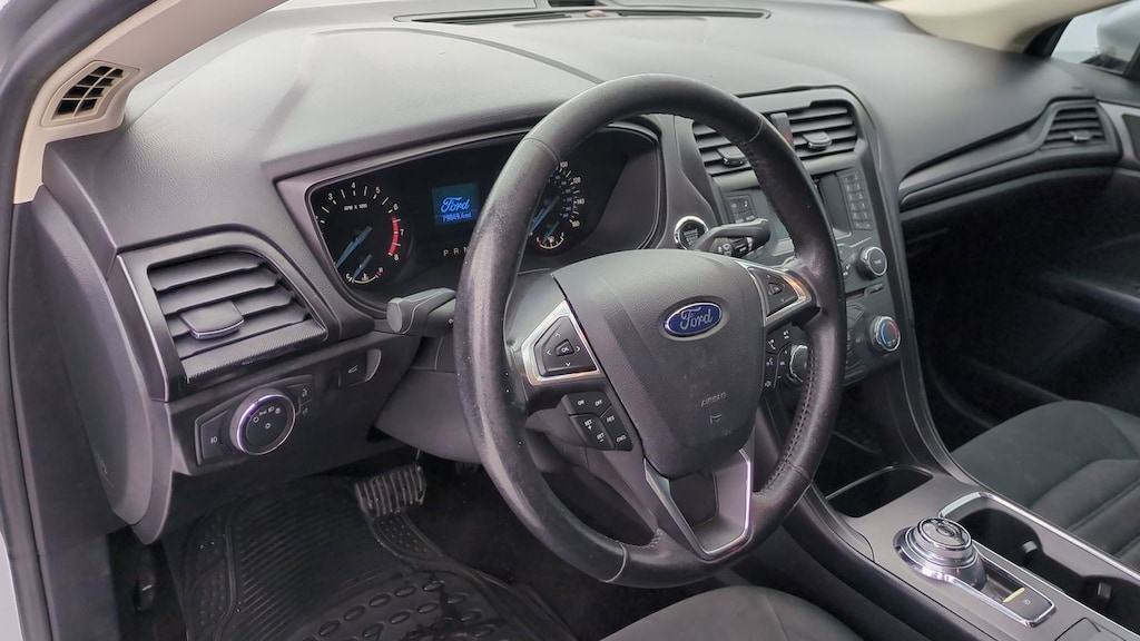 2018 Ford Fusion S Is nicely equipped with Equipment Group 101A, Fusion S Appearance Package (Halogen Fog Lamps, Leather-Wrapped Steering Wheel, Rear Spoiler, and Wheels: 18" Magnetic-Painted Aluminum), 6-Speed Automatic, 4 Speakers, 4-Wheel Disc Brakes, ABS brakes, Air Conditioning, All-Weather Front & Rear Floor Mats, Alloy wheels, AM/FM radio, Brake assist, Bumpers: body-color, CD player, Cloth Front Bucket Seats, Delay-off headlights, Driver door bin, Driver vanity mirror, Dual front impact airbags, Dual front side impact airbags, Electronic Stability Control, Emergency communication system: 911 Assist, Exterior Parking Camera Rear, Four wheel independent suspension, Front anti-roll bar, Front Bucket Seats, Front Center Armrest, Front reading lights, Fully automatic headlights, Illuminated entry, Knee airbag, Low tire pressure warning, Occupant sensing airbag, Overhead airbag, Overhead console, Panic alarm, Passenger door bin, Passenger vanity mirror, Power door mirrors, Power steering, Power windows, Radio data system, Radio: AM/FM Stereo/MP3/Single-CD, Rear anti-roll bar, Rear reading lights, Rear window defroster, Remote keyless entry, Security system, Speed control, Speed-sensing steering, Speed-Sensitive Wipers, Split folding rear seat, Steering wheel mounted audio controls, SYNC Communications & Entertainment System, Tachometer, Telescoping steering wheel, Tilt steering wheel, Traction control, Trip computer, Variably intermittent wipers, and Wheels: 16" Sparkle Silver-Painted Aluminum.