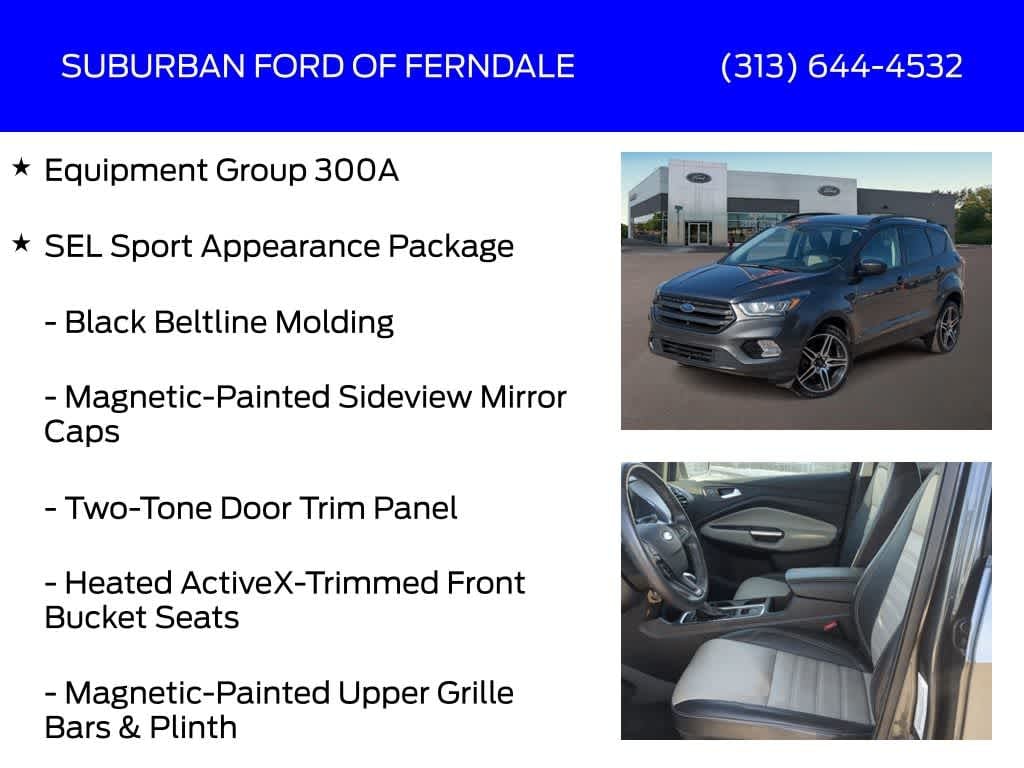 Magnetic Metallic 2019 Ford Escape SEL 4WD 6-Speed Automatic 1.5L EcoBoost 4WD, AM/FM Radio: SiriusXM, AppLink/Apple CarPlay and Android Auto, Automatic Temperature Control, Black Beltline Molding, Equipment Group 300A, Exterior Parking Camera Rear, Front & Rear Magnetic-Painted Skid Plates, Front Dual Zone A/C, Front/Rear Floor Mats w/Embroidered Logo, Fully Automatic Headlights, Heated ActiveX-Trimmed Front Bucket Seats, Heated External Mirrors, Heated Front Seats, Magnetic-Painted Sideview Mirror Caps, Magnetic-Painted Upper Grille Bars & Plinth, Power Driver Seat, Power Liftgate, Rear Parking Sensors, Rear Window Defroster, Remote Keyless Entry, SEL Sport Appearance Package, SYNC 3 Communications & Entertainment System, Taillamps w/Black Bezel, Two-Tone Door Trim Panel, Wheels: 19 Aluminum w/Black Painted Pockets.