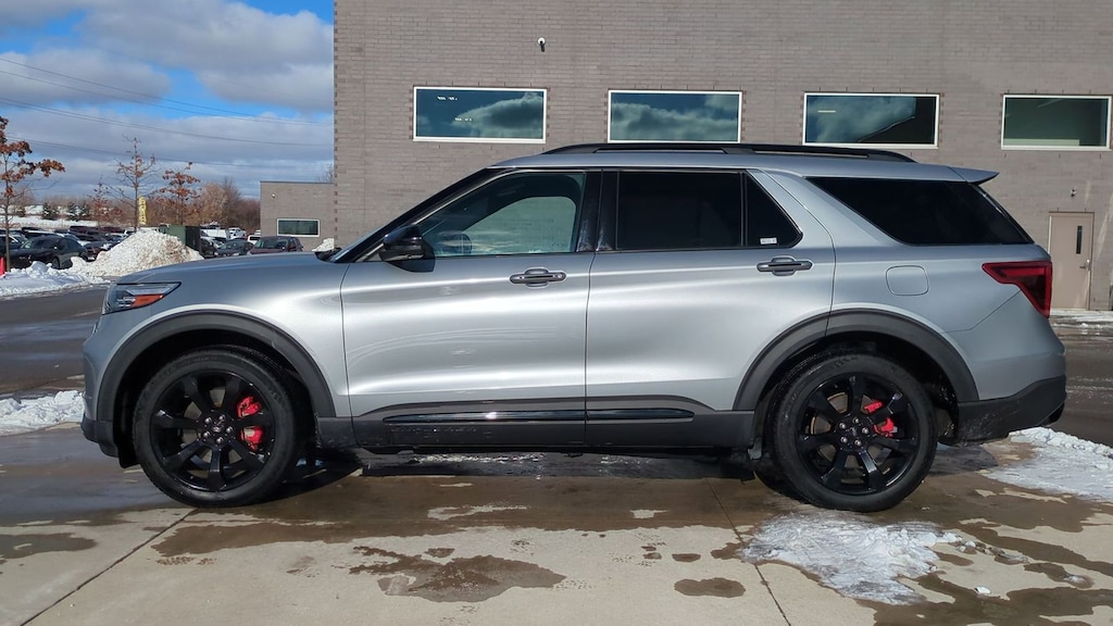 Recent Arrival! 2020 Ford Explorer ST Is nicely equipped with Equipment Group 400A, Premium Technology Package (10.1" LCD Capacitive Portrait Touchscreen, 2 Additional Speakers, and Leather Htd/Ventilated Sport Captain's Chairs), ST Street Pack (Performance Front & Rear Brakes and Wheels: 21" Aluminum), 4WD, 12 Speakers, 20" Machined Aluminum w/Painted Pockets Wheels, 3.58 Non-Limited-Slip Rear Axle Ratio, 3rd row seats: bench, 4-Wheel Disc Brakes, ABS brakes, Air Conditioning, Alloy wheels, AM/FM radio: SiriusXM, Auto High-beam Headlights, Auto-dimming door mirrors, Auto-dimming Rear-View mirror, Automatic temperature control, Brake assist, Bumpers: body-color, Compass, Delay-off headlights, Driver door bin, Driver vanity mirror, Dual front impact airbags, Dual front side impact airbags, Electronic Stability Control, Emergency communication system: SYNC 3 911 Assist, Exterior Parking Camera Rear, FordPass Connect, Four wheel independent suspension, Front & Second Row Floor Liners, Front anti-roll bar, Front Bucket Seats, Front Center Armrest, Front dual zone A/C, Front fog lights, Front reading lights, Fully automatic headlights, Garage door transmitter: HomeLink, Heated door mirrors, Heated front seats, Heated rear seats, Heated steering wheel, Illuminated entry, Knee airbag, Leather steering wheel, Low tire pressure warning, Memory seat, Navigation System, Occupant sensing airbag, Outside temperature display, Overhead airbag, Overhead console, Panic alarm, Passenger door bin, Passenger vanity mirror, Power door mirrors, Power driver seat, Power Liftgate, Power passenger seat, Power steering, Power windows, Radio data system, Radio: B&O Sound System by Bang & Olufsen, Rain sensing wipers, Rear air conditioning, Rear anti-roll bar, Rear reading lights, Rear window defroster, Rear window wiper, Remote keyless entry, Roof rack: rails only, Security system, Speed control, Speed-sensing steering, Speed-Sensitive Wipers, Split folding rear seat, Spoiler, Sport steering wheel, Steering wheel memory, Steering wheel mounted audio controls, SYNC 3 Communications & Entertainment System, SYNC 3/Apple CarPlay/Android Auto, Tachometer, Telescoping steering wheel, Tilt steering wheel, Traction control, Trip computer, Turn signal indicator mirrors, Twin Panel Moonroof, Variably intermittent wipers, Ventilated front seats, and Voice-Activated Touchscreen Navigation System.