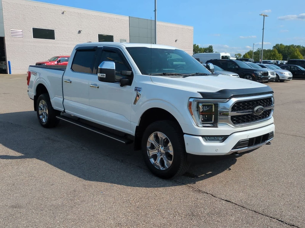 2021 Ford F-150 Platinum Star White Metallic Tri-Coat 4WD 20 Polished Aluminum Wheels, 360 Degree Camera, 4x4 FX4 Off-Road Bodyside Decal, Active Park Assist 2.0, AM/FM radio: SiriusXM with 360L, Auto High-beam Headlights, Automatic temperature control, BlueCruise Hands-Free Driving, Class IV Trailer Hitch Receiver, Electronic Locking w/3.31 Axle Ratio, Equipment Group 701A High, Extended Range 36 Gallon Fuel Tank, Exterior Parking Camera Rear, Ford Co-Pilot360 Active 2.0 Package, Front dual zone A/C, Front fog lights, Fully automatic headlights, FX4 Off-Road Package, GVWR: 7,150 lbs Payload Package, Heated front seats, Heated rear seats, Heated steering wheel, Hill Descent Control, Integrated Trailer Brake Controller, Memory seat, Monotube Rear Shocks, Navigation system: Connected Navigation (90-Day Trial), Off-Road Tuned Front Shock Absorbers, Pedal memory, Power driver seat, Power passenger seat, Power Tailgate, Pro Trailer Backup Assist, Radio: B&O Sound System by Bang & Olufsen, Radio: B&O Unleashed Sound System by Bang & Olufsen, Rain sensing wipers, Rock Crawl Mode, Speed-sensing steering, Steering wheel mounted audio controls, SYNC 4 w/Enhanced Voice Recognition, Tow Technology Package, Trailer Tow Package, Tray Style Floor Liner, Twin Panel Moonroof, Unique Multi-Contour Leather Bucket Seats, Ventilated front seats.
