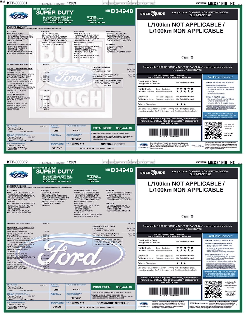2021 Ford F-250SD Lariat Is nicely equipped with FX4 Off-Road Package (Hill Descent Control, Off-Road Specifically Tuned Shock Absorbers, and Unique FX4 Off-Road Box Decal), GVWR: 10,000 lb Payload Package, Lariat Black Appearance Package (6" Ebony Black Angular Running Boards, Black Out Surrounds LED Only Headlamps, Body-Color Front & Rear Bumpers, Ebony Black Painted Front Grille Bars, Ebony Black Painted Mirror Caps, Rear Wheel Well Liners (Pre-Installed), Tough Bed Spray-In Bedliner, and Wheels: 20" High-Gloss Black Premium Painted Alum), 4WD, ABS brakes, Alloy wheels, Compass, Electronic Stability Control, Front dual zone A/C, Heated door mirrors, Illuminated entry, Low tire pressure warning, Remote keyless entry, Traction control, 10 Speakers, 110V/400W Outlet, 3.73 Axle Ratio, 4-Wheel Disc Brakes, Adjustable pedals, Air Conditioning, AM/FM radio: SiriusXM, Auto High-beam Headlights, Auto-dimming Rear-View mirror, Automatic temperature control, Brake assist, Bumpers: chrome, Delay-off headlights, Driver door bin, Driver vanity mirror, Dual front impact airbags, Dual front side impact airbags, Emergency communication system: SYNC 3 911 Assist, Exterior Parking Camera Rear, Flow-Through Console, Front anti-roll bar, Front Bucket Seats, Front Center Armrest, Front fog lights, Front Leather Seating Surfaces 40/Console/40, Front reading lights, Fully automatic headlights, Leather steering wheel, Outside temperature display, Overhead airbag, Overhead console, Panic alarm, Passenger door bin, Passenger vanity mirror, Power door mirrors, Power driver seat, Power passenger seat, Power steering, Power windows, PowerScope Trailer Tow Mirrors w/Heat, Radio data system, Radio: B&O System by Bang & Olufsen, Rear Parking Sensors, Rear reading lights, Rear seat center armrest, Rear step bumper, Rear window defroster, Security system, SiriusXM Radio, Speed control, Split folding rear seat, Steering wheel mounted audio controls, SYNC 3 Communications & Entertainment System, Tachometer, Telescoping steering wheel, Tilt steering wheel, Trip computer, Turn signal indicator mirrors, Variably intermittent wipers, and Wheels: 18" Bright Machined Cast Aluminum.