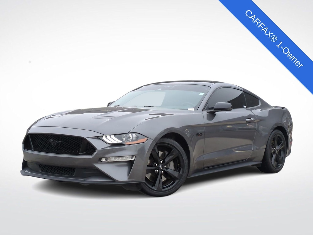 Recent Arrival! Clean CARFAX. 2021 Ford Mustang GT Premium Is nicely equipped with Black Accent Package (Black GT, 5.0 & Pony Badges, Black Mirror Caps, Black Rear Spoiler, Painted Black Roof, and Wheels: 19" x 8.5" Ebony Black-Painted Aluminum), Black Accent Package w/Shadow Black Paint, Equipment Group 401A (12" LCD Digital Instrument Cluster w/MyColor, Heated Steering Wheel, Leather-Trimmed Bucket Seats w/Color Accents, and Memory Driver Seat, Mirrors & Ambient Lighting), Ford Safe & Smart Package (Adaptive Cruise Control), 4-Wheel Disc Brakes, ABS brakes, Active Valve Performance Exhaust, Air Conditioning, Alloy wheels, AM/FM Stereo, Auto High-beam Headlights, Auto-dimming Rear-View mirror, Brake assist, Bumpers: body-color, California Special Script Rear Badging, Compass, Delay-off headlights, Driver door bin, Driver vanity mirror, Dual front impact airbags, Dual front side impact airbags, Electronic Stability Control, Emergency communication system: 911 Assist, Exterior Parking Camera Rear, Four wheel independent suspension, Front anti-roll bar, Front Bucket Seats, Front Center Armrest, Front fog lights, Front reading lights, Fully automatic headlights, Illuminated entry, Knee airbag, Low tire pressure warning, Occupant sensing airbag, Outside temperature display, Overhead airbag, Overhead console, Panic alarm, Passenger door bin, Passenger vanity mirror, Power door mirrors, Power driver seat, Power passenger seat, Power steering, Power windows, Radio data system, Radio: B&O Sound System by Bang & Olufsen, Rain sensing wipers, Rear anti-roll bar, Rear window defroster, Remote keyless entry, Security system, Speed control, Speed-sensing steering, Speed-Sensitive Wipers, Split folding rear seat, Spoiler, Steering wheel mounted audio controls, Tachometer, Telescoping steering wheel, Tilt steering wheel, Traction control, Trip computer, Variably intermittent wipers, Voltmeter, and Wheels: 18" x 8" Machined-Face Aluminum.