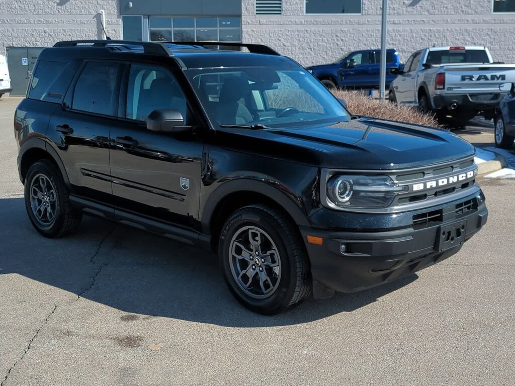 2022 Ford Bronco Sport Big Bend Shadow Black 4WD Bronco Sport Big Bend, 4D Sport Utility, 1.5L EcoBoost, 4WD, Shadow Black, Ebony w/Unique Cloth Front Bucket Seats, Class II Trailer Tow Package w/Trailer Sway Control, Convenience Package, Equipment Group 200A, Evasive Steering Assist, Ford Co-Pilot360 Assist+, Front Driver & Passenger Seatback Zipper Pockets, Heated Front Bucket Seats, Intelligent Access (Lock/Unlock), Intelligent Adaptive Cruise Control w/Stop & Go, Leather-Wrapped Steering Wheel, LED Fog Lamps, Navigation System, Rear Parking Sensors, Universal Garage Door Opener (UGDO), Voice-Activated Touchscreen Navigation System, Wireless Charging Pad.